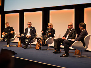 Im Anschluss nahm der Wirtschaftsforscher an der von Gros moderierten Diskussion teil. Gemeinsam mit Sandra Bindler, Vorstandsvorsitzende der Münchner Bank eG, Philipp Depiereux, CEO der etventure GmbH, und Eckhard Schwarzer, stellvertretender Vorstandsvorsitzender der Datev, diskutierten sie über die Chancen des genossenschaftlichen Geschäftsmodells in der digitalen Welt.