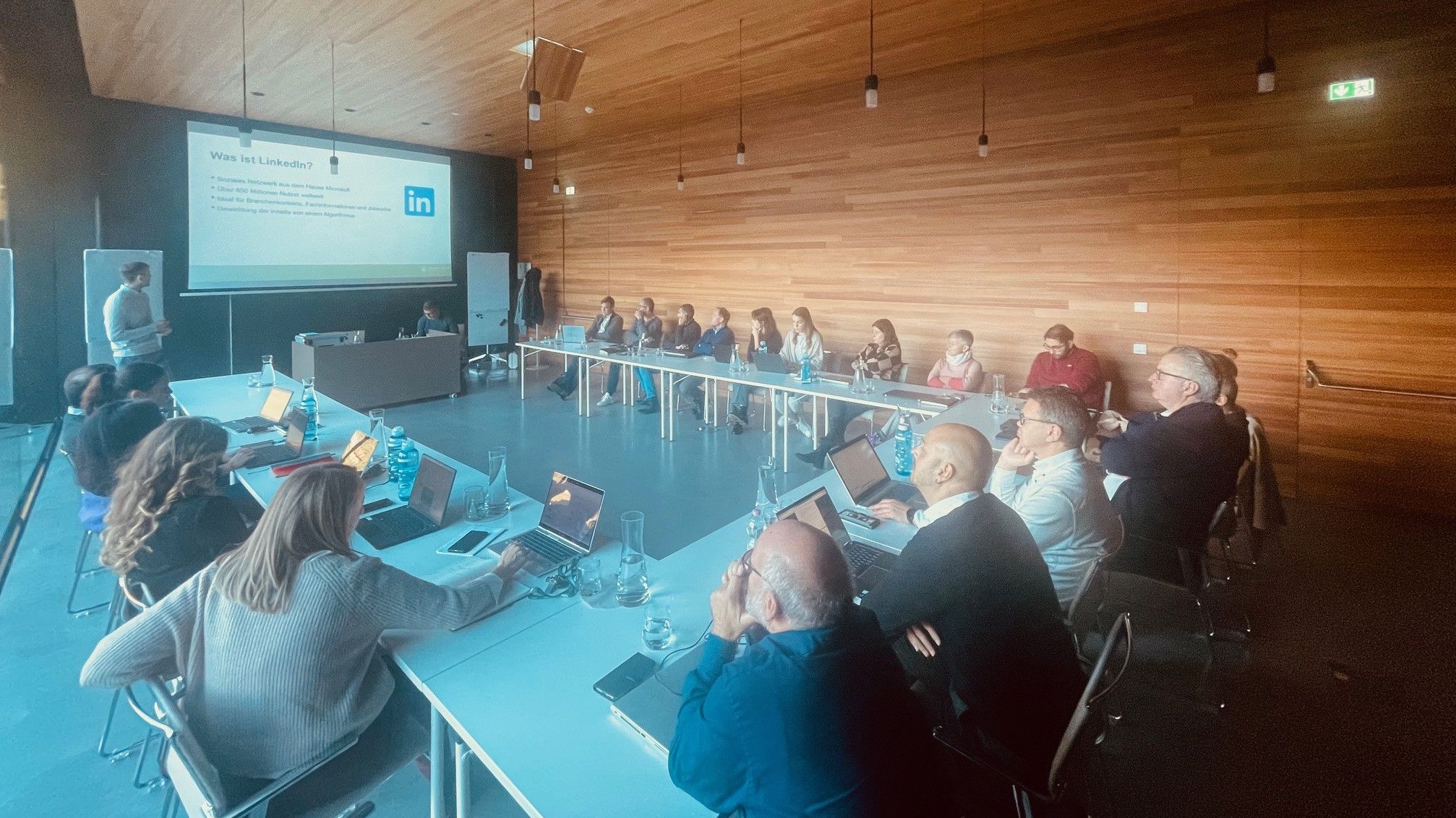 Im Rahmen einer eigens konzipierten Inhouse-Schulung – entwickelt in Zusammenarbeit mit dem Fachbereich Aus- und Weiterbildung – wurden gezielt Führungskräfte und Verantwortliche aus den Bereichen Verwaltung, Personal, Marketing und Vertrieb geschult. Diese Personen spielen eine Schlüsselrolle bei der Präsenz des Unternehmens auf LinkedIn. Die 20 Teilnehmenden lernten nicht nur die technischen Grundlagen der Plattform kennen, sondern auch, wie der LinkedIn-Algorithmus funktioniert und wie sich Unternehmen optimal verhalten können, um ihre Reichweite und Ergebnisse zu maximieren. Ziel der Schulung war es, LinkedIn als festen Bestandteil der Unternehmenskommunikation zu etablieren und auf Führungsebene zu verankern.
