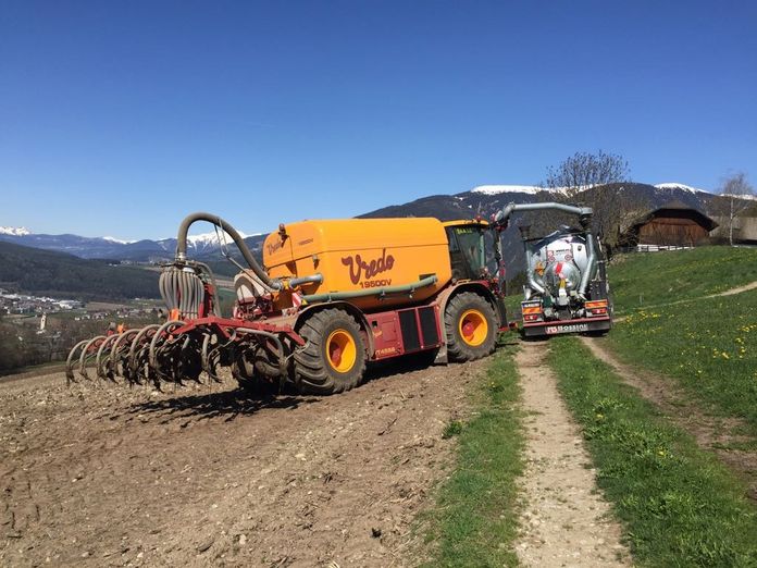 Beim Vergären der Gülle entsteht nicht nur Biogas, aus dem Strom produziert wird, sondern es bleibt auch ein wertvolles Gärprodukt übrig. Die Nährstoffe dieses Naturdüngers sind für die Pflanzen besser verfügbar, weil sie weniger ätzend und reizend wirken als Gülle. Ein Spezialtraktor der Genossenschaft arbeitet das vergorene Endprodukt während der Vegetationszeit direkt in den Boden auf den Feldern der Mitglieder ein. Mit dieser schonenden Ausbringungstechnik der sogenannten Gülleinjektion werden kaum Gerüche in die Umgebung freigegeben, Emissionen werden vermieden und die Nährstoffe bleiben im Boden an der Pflanze. Heute werden weit mehr als 1.000 Hektar Fläche im Großraum Bruneck-St. Lorenzen mit dieser Technik gedüngt. Die gemeinschaftliche Ausbringung ermöglicht es zudem, jedem Feld die richtige Nährstoffmenge zuzubringen. „Für die Bauern ist die zentrale Abwicklung vom Abholen der Gülle am Hof bis zum Ausbringen des Gärprodukts auf dem Feld natürlich sehr vorteilhaft. Der genossenschaftliche Gedanke hat uns in den vergangenen Jahren darin bestärkt, diese Ausbringtechnik trotz der sehr hohen Kosten einzusetzen. In vielen anderen Regionen wird diese Technik nur durch hohe Beiträge der öffenlichen Hand verwendet. Bis jetzt haben wir es geschafft, durch einen erfolgreichen Betrieb der Biogasanlage, diesen Dienst auch ohne direkte Förderung aufrechtzuerhalten", sagt Obmann Viktor Wierer.
