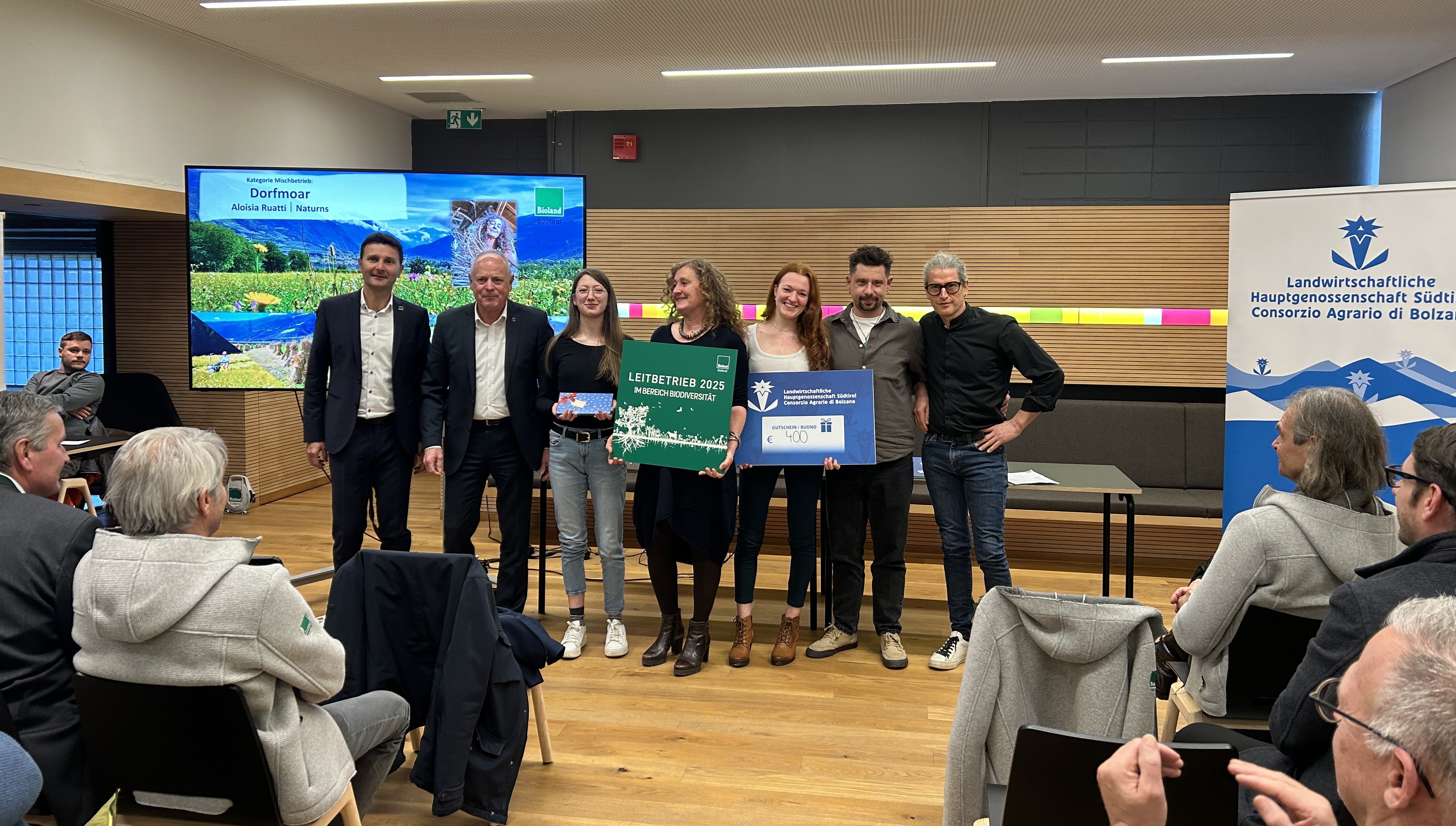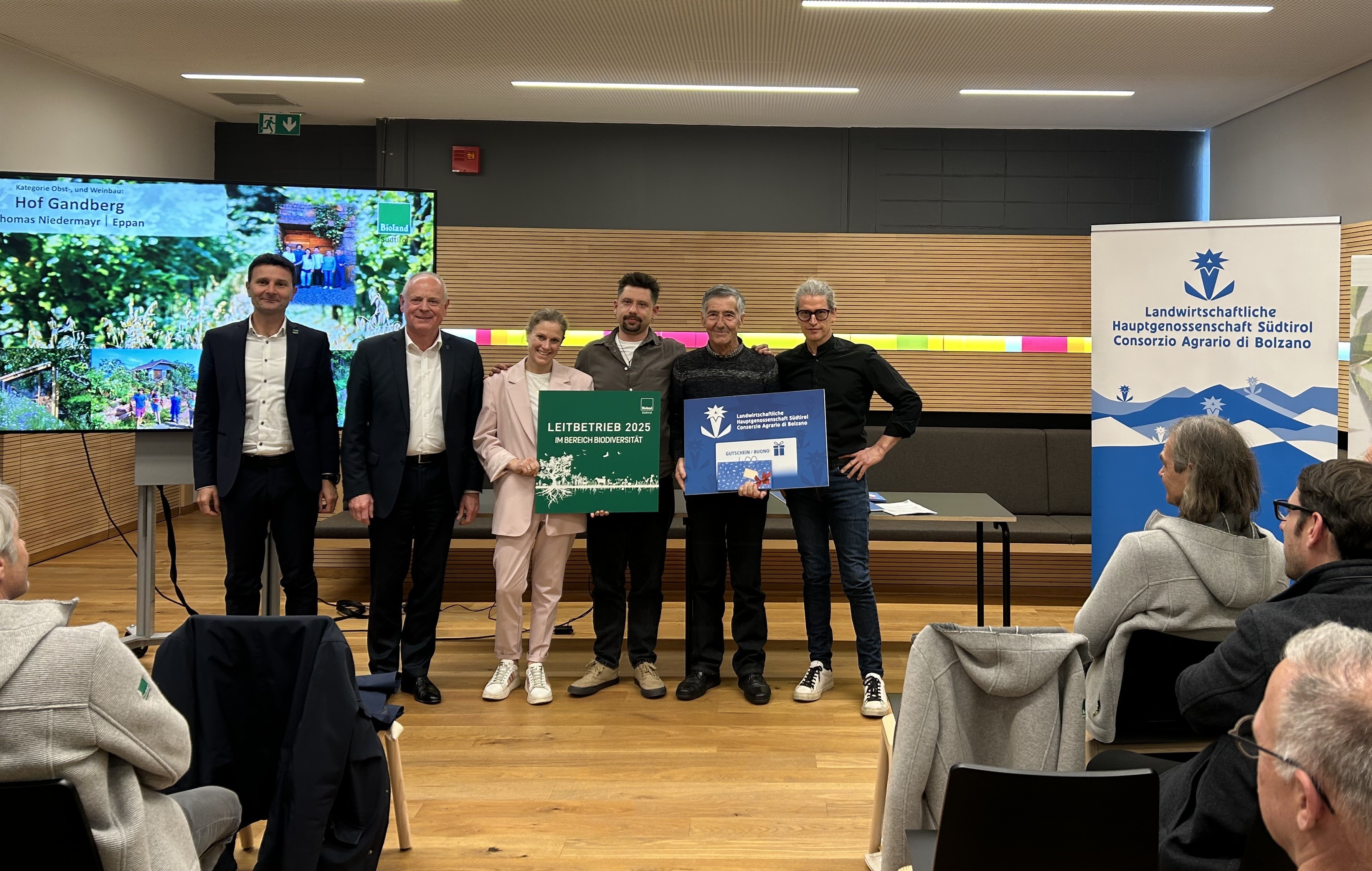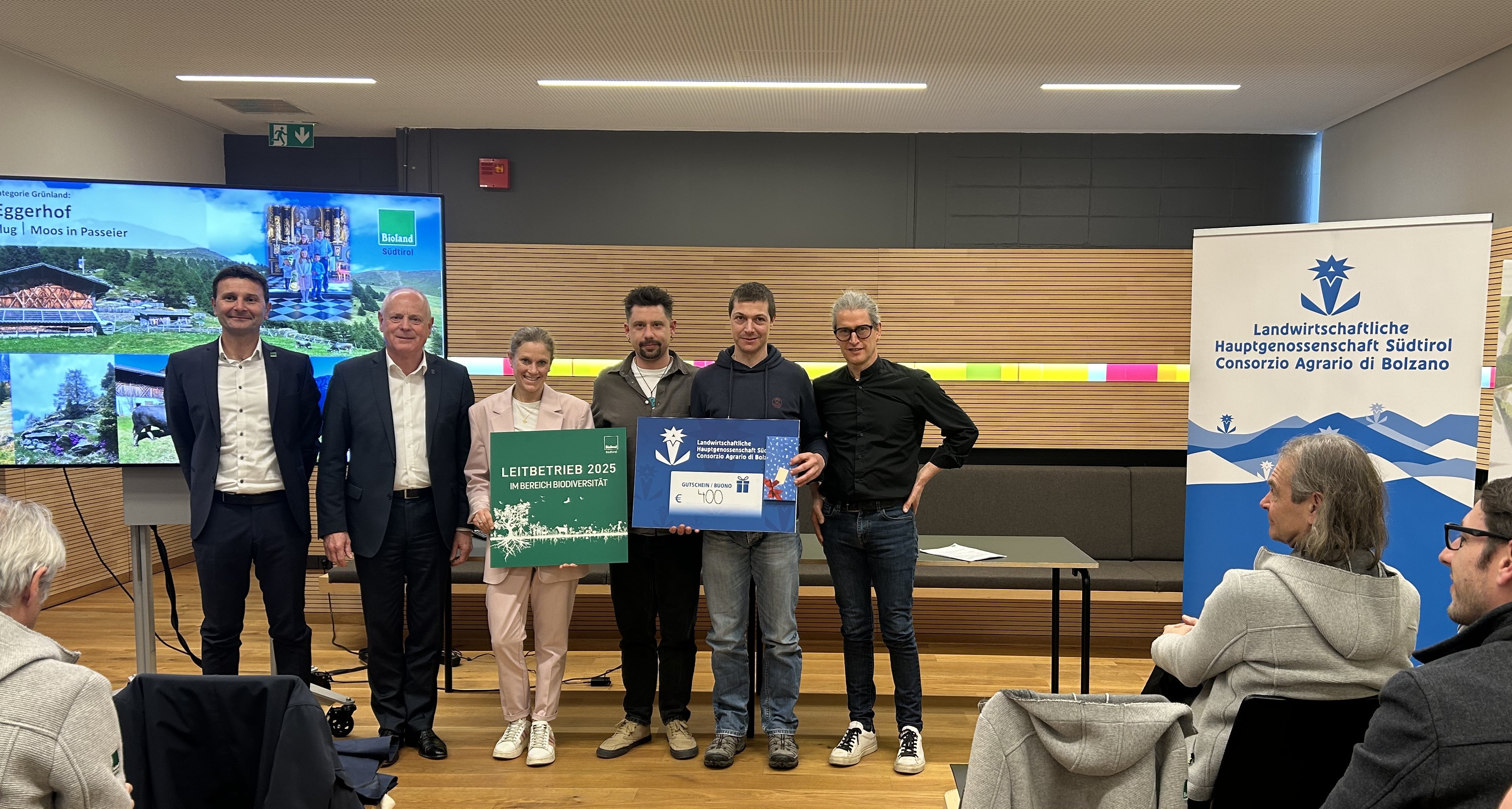 Wie jedes Jahr erhalten die Gewinner nicht nur ein Leitbetriebsschild, sondern auch – dank der Zusammenarbeit zwischen Bioland Südtirol und der Landwirtschaftlichen Hauptgenossenschaft – einen Gutschein im Wert von 400 Euro für den Einkauf ökologisch wertvoller Materialien.