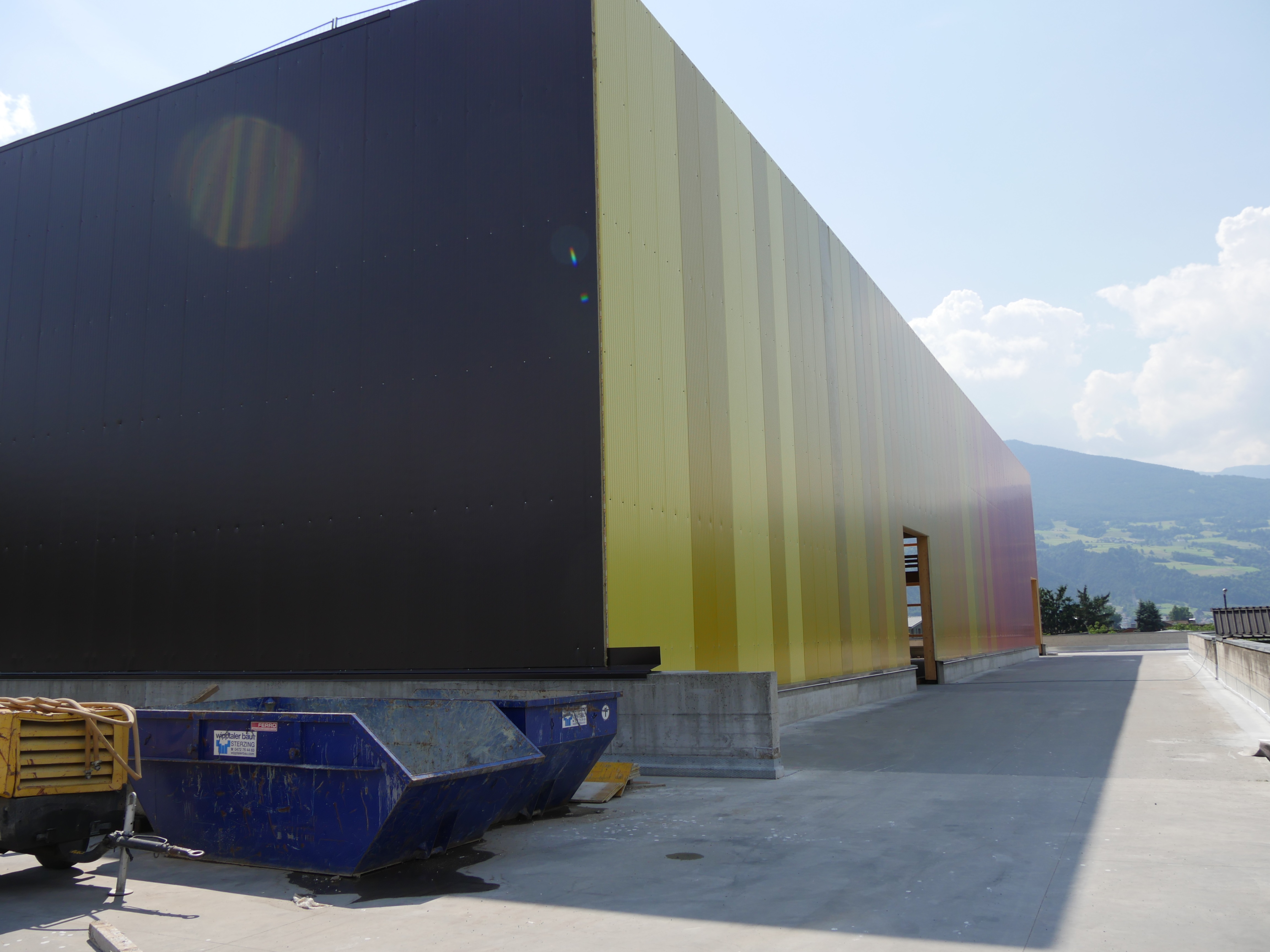 Auf der Baustelle selbst herrscht emsiges Treiben. Im Eiltempo wurden seit Februar gearbeitet – die  ersten Lagerzellen sind schon beinahe betriebsbereit. Und auch die Außenfassade nach dem Siegerentwurf des Büros „Kerschbaumer Pichler & Parnter Architekten“ ist zu Teilen schon angebracht. Die in Rot-,Gelb- und Orange- und Grüntönen gehaltenen Alu-Tafeln wurden in Einzelteilen mithilfe eines Krans angebracht. Zusammen mit einer lichtdurchlässigen Außenverkleidung sollen sie eine Kulturlandschaft darstellen. Die bunten Flächen sorgen für die markante „Leuchtturm-Funktion“ im Brixner Talkessel. Zusammen mit der Holzkonstruktion der Brixner Firma LignoAlp lässt sich MELIX den Zubau einiges kosten. Auf 4,7 Mio. Euro Gesamtkosten belaufen sich die Arbeiten inklusive aller Gewerke. Man liegt laut MELIX damit aber noch deutlich unter vergleichbaren Konstruktionen. Auf lange Sicht zahlen sich die Investitionen aus, ist man in Brixen überzeugt: „Wir und unsere Mitglieder haben erkannt, dass es längerfristig betrachtet Sinn macht, mehr und mehr intern zu lagern. So sollen der Bau und eine interne Lagerung des Obstes die Kosten gegenüber einer externen Lösung auf Dauer um 50 % reduzieren."