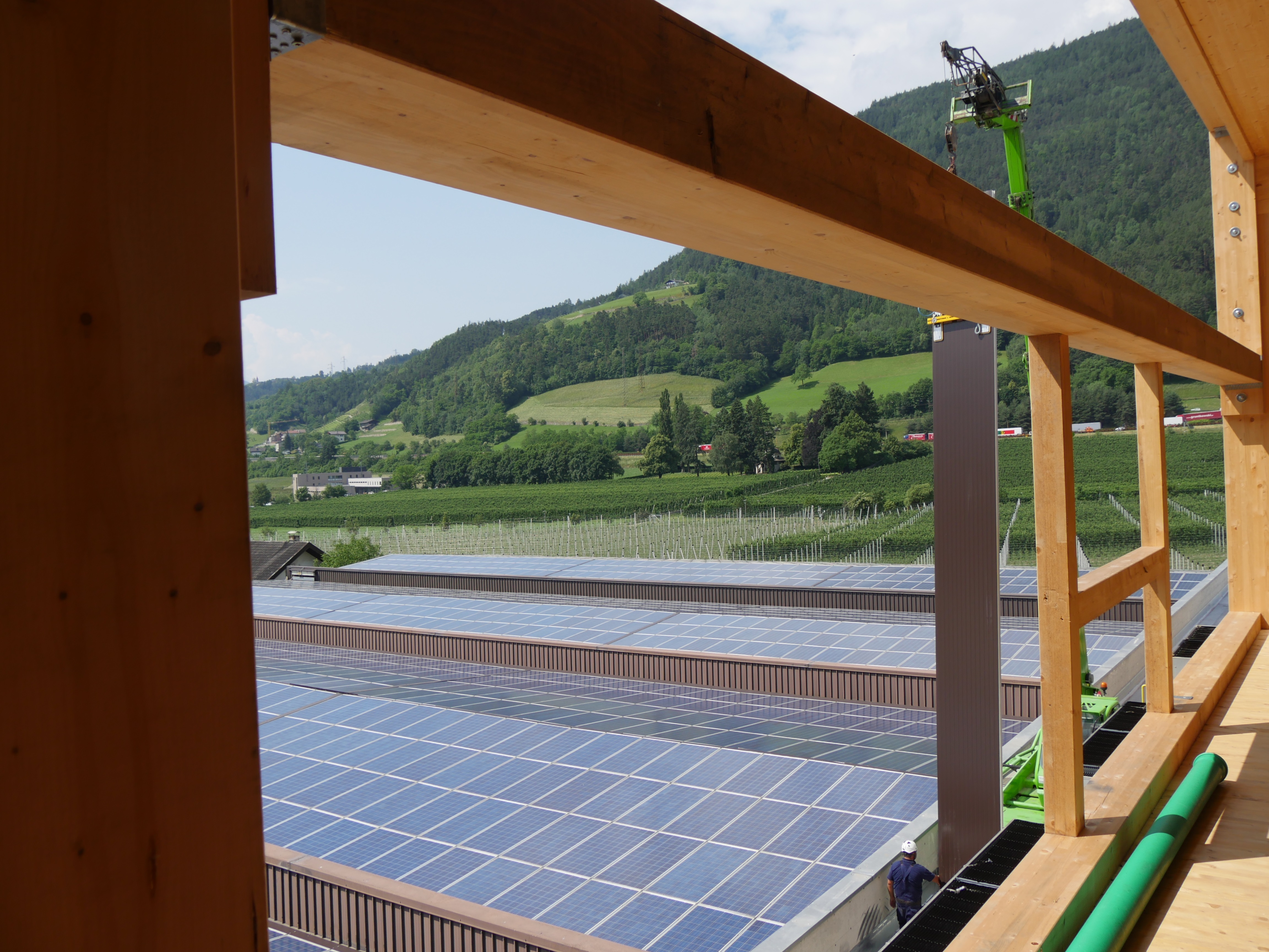 Im Norden Brixens leuchten sie von weitem: die bunten Fassaden des Hallenzubaus der Obstgenossenschaft MELIX. Seit Februar bekommt dort das Dach des Lagerbetriebes einen zweiten Stock hinzugebaut, in Form einer Holzkonstruktion mit Aluminiumverkleidung. Einmal fertig gestellt, soll es mit einem Gesamtvolumen von über 290.000 Kubikmeter der größte Holzbau im oberen Eisacktal sein und insgesamt Platz für rund 800 Waggon Obst bieten. „Diesen Platz braucht die Obstgenossenschaft in Brixen auch“, meint Obmann Johann Gasser. „Unsere 175 Mitglieder, die 598 Hektar Nettofläche bewirtschaften, steigern ihre Produktion stetig. Eine Erweiterung unserer Lagerfläche war unabdingbar geworden und so hat die Genossenschaft auf der Vollversammlung im November des letzten Jahres grünes Licht gegeben.“ Dabei konnten sich die aktuellen Mitglieder auf eine weise Voraussicht der Vorgänger-Führung stützen: „Schon in den 90ern hatte man erkannt, dass die damalige Struktur in den nächsten 30 Jahren nicht ausreichen wird. So hat man in weiser Voraussicht das Dach so angebracht, dass eine Zusatzkonstruktion übergebaut werden kann“, meint  Johann Gasser.