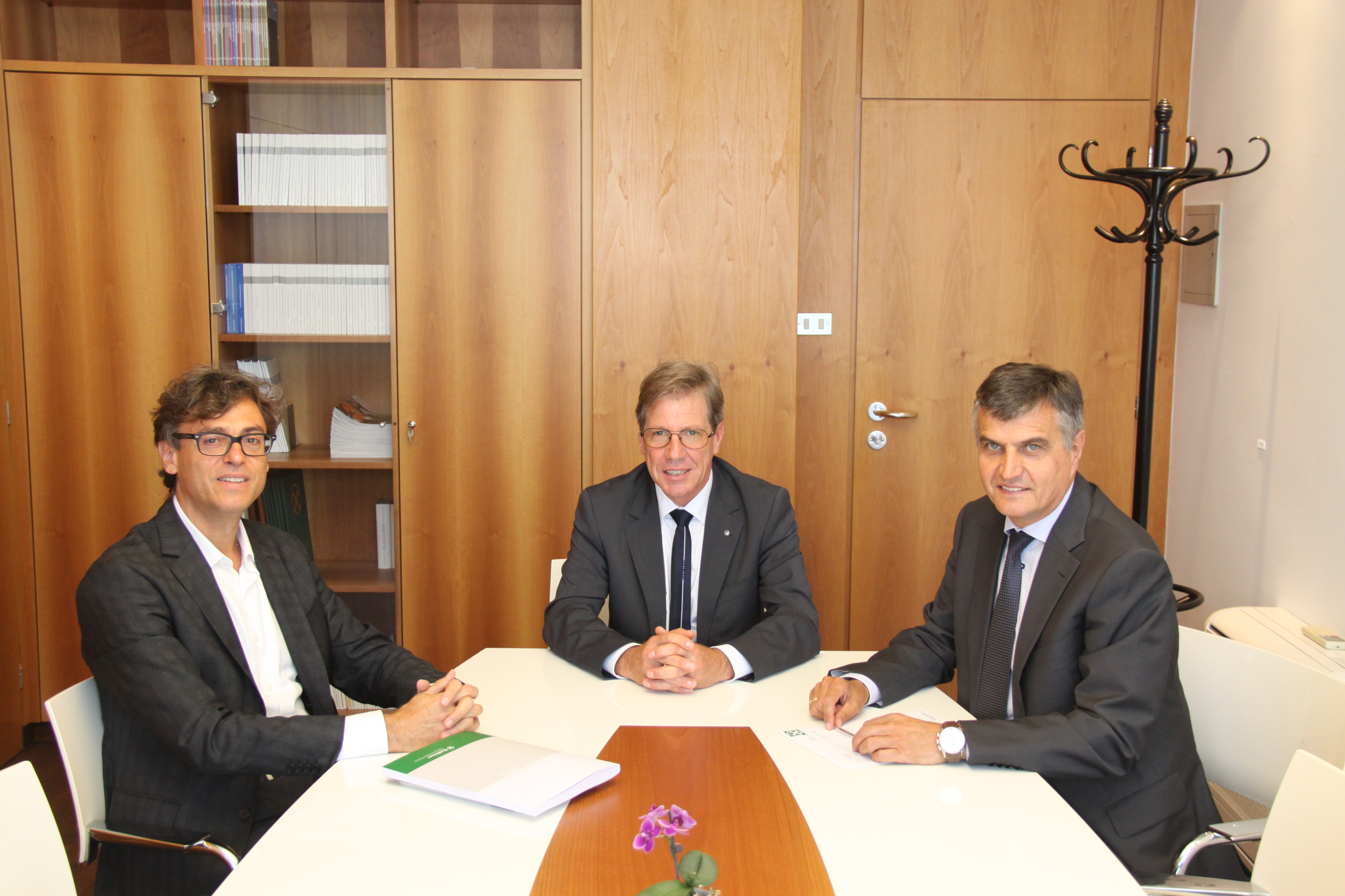 Beim Informationsaustausch, der am Donnerstagvormittag zwischen dem neuen Obmann des Raiffeisenverbandes, Herbert Von Leon, sowie Generaldirektor Paul Gasser und dem Vize-Sekretär von Confcooperative, Marco Venturelli, stattfand, wurden neben der Regelung der Mitgliedschaft des Raiffeisenverbandes auch die Mitgliedsbeiträge für die nächsten Jahre definiert.