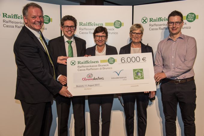 Zum Abschluss der Sommergespräche verkündete Obmann Hanspeter Felder das Ergebnis der Spendenaktion, die bereits zum dritten Mal erfolgreich stattgefunden hat. Die Gäste spendeten bei ihrer Anmeldung zur Veranstaltung eine eindrucksvolle Summe, die von der Raiffeisenkasse Bruneck verdoppelt wurde: Insgesamt wurden 6.000 Euro an die Clowndoctors Südtirol, den Verein Frauen helfen Frauen und das Projekt Brösljäger des Vereins Volontarius gespendet.