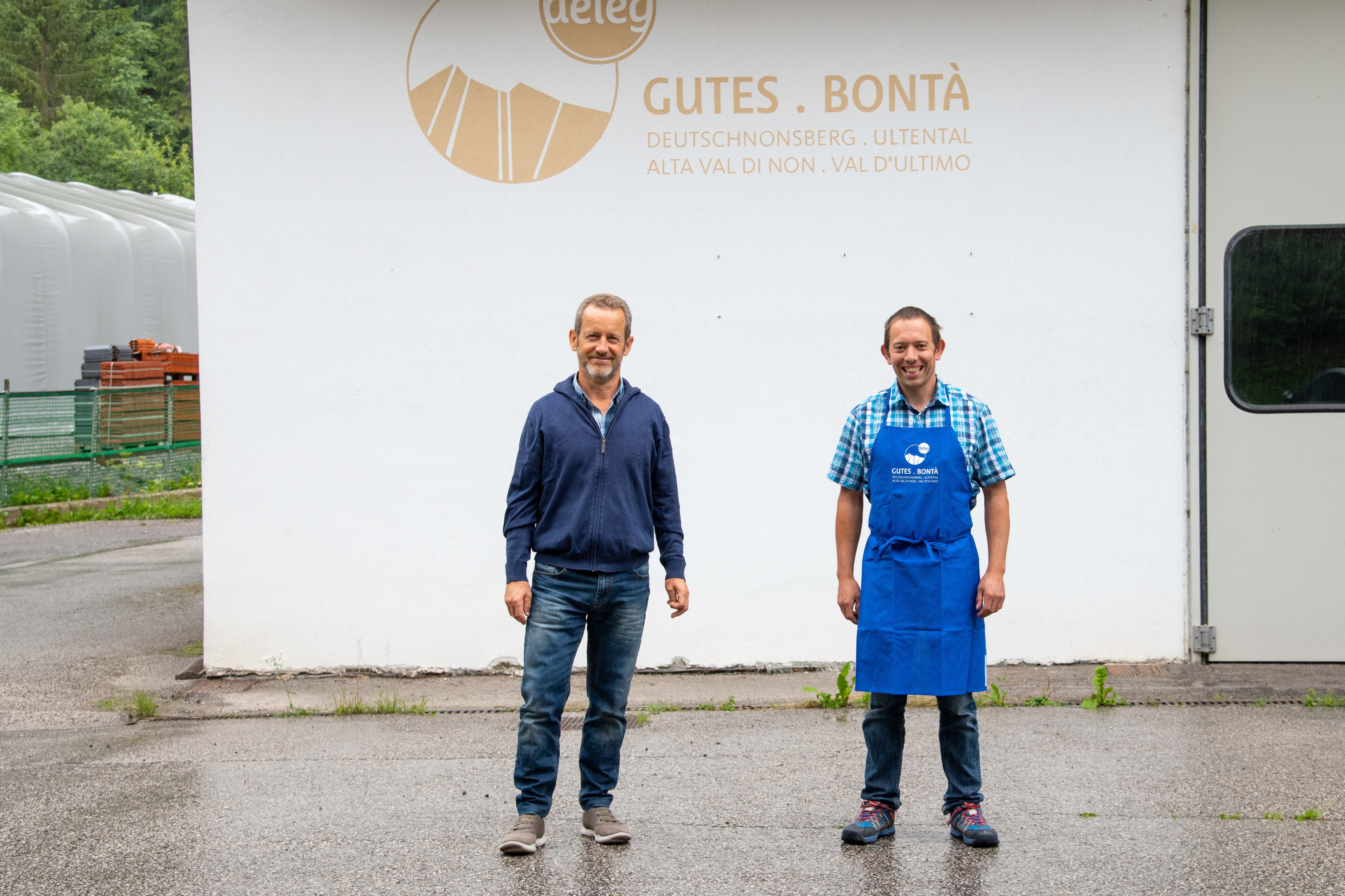 Geschäftsführer Hubert Ungerer und Obmann Elmar Mairhofer vor dem Deleg-Sitz in Proveis.
