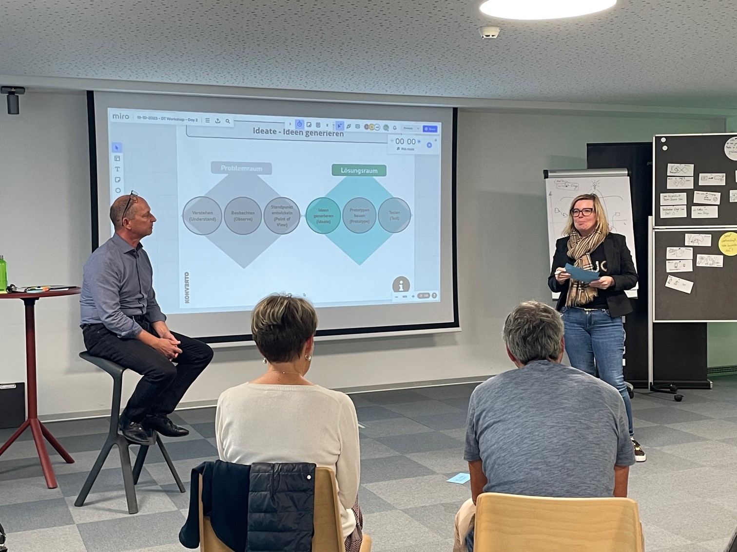 Das Handy mit Touchscreen von Steve Jobs ist so entstanden und auch die Idee hinter Airbnb entstand aus einem Design-Thinking-Prozess. Beispiele für erfolgreiches „Design Thinking“ gibt es inzwischen viele, denn die Methode hat in vielen Branchen an Popularität gewonnen. „Das Besondere an dieser Herangehensweise ist, dass bei der Suche nach neuen Ideen, Produkten oder Dienstleistungen die Bedürfnisse der Kunden und Anwenderinnen im Mittelpunkt stehen und ihre Anregungen bereits bei der Entwicklung mit einbezogen werden“, erklärt der Referent Alexander Wallnöfer, zertifizierter Design Thinking Coach, Experte für Digitaltransformation, agiles Management und Digital-Leadership und Head of Unit Solution & Innovation von KONVERTO AG. Er stellte im Verlauf des Seminars das Tun in den Vordergrund.