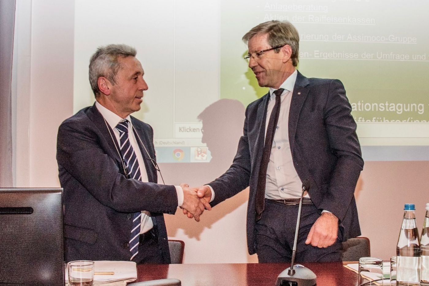 Luigi Parisotto, der seit Juni 2012 Direktor der Bozner Banca d'Italia-Zweigstelle ist und mit Ende Februar 2018 in den Ruhestand tritt, zog bei der Tagung eine positive Bilanz über seine Tätigkeit in Südtirol. Dabei unterstrich er auch die Zusammenarbeit mit der Raiffeisenorganisation, strich die historischen Änderungen für die Raiffeisenkassen heraus, die auch als neue Bankengruppe ihre vorbildliche Rolle für Wirtschaft und Menschen im Land bewahren mögen. Verbandsobmann Herbert Von Leon und Generaldirektor Paul Gasser dankten Parisotto für die sehr gute Zusammenarbeit auch in durchaus schwierigen Jahren. "Sie sind dem Raiffeisensystem stets positiv gegenüber gestanden", sagte Gasser. Auch Landesbank-Präsident Michael Grüner und Generaldirektor Zenone Giacomuzzi hoben die konstruktive Zusammenarbeit mit Parisotto hervor und dankten ihm speziell für die Unterstützung bei der Umsetzung der neuen Raiffeisen-Bankengruppe. Mit einem lang anhaltenden Applaus bedankten sich die Obmänner und Geschäftsführer der Raiffeisenkassen bei Luigi Parisotto.