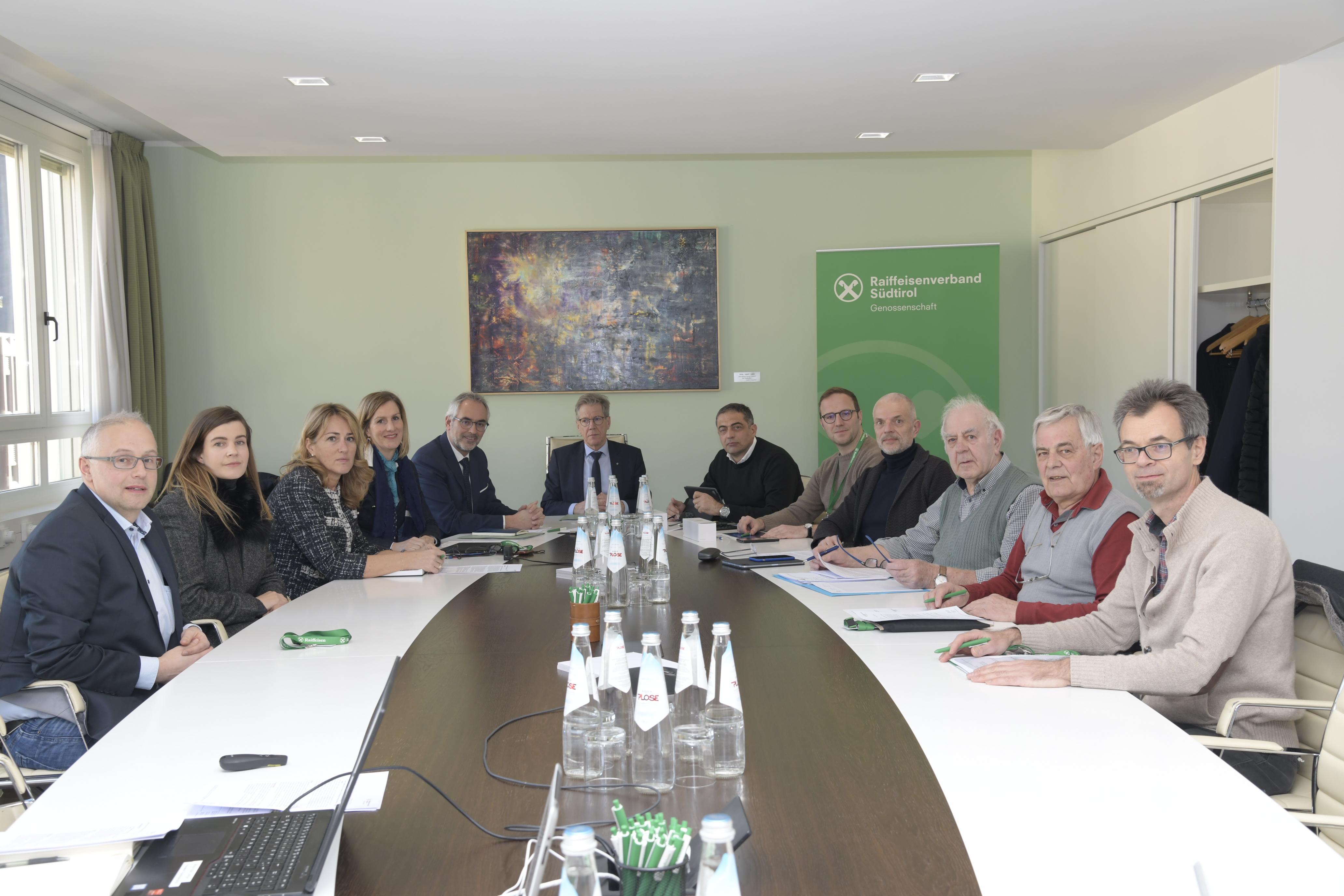 Anfang Februar begrüßten Verbandsobmann Herbert Von Leon und Generaldirektor Robert Zampieri die Spitzenvertreter von Confcooperative Consumo e Utenza, Präsident Roberto Savini und Direktor Antonio Amato, zur Sitzung des Koordinierungsausschusses Energie im Raiffeisenhaus Bozen.