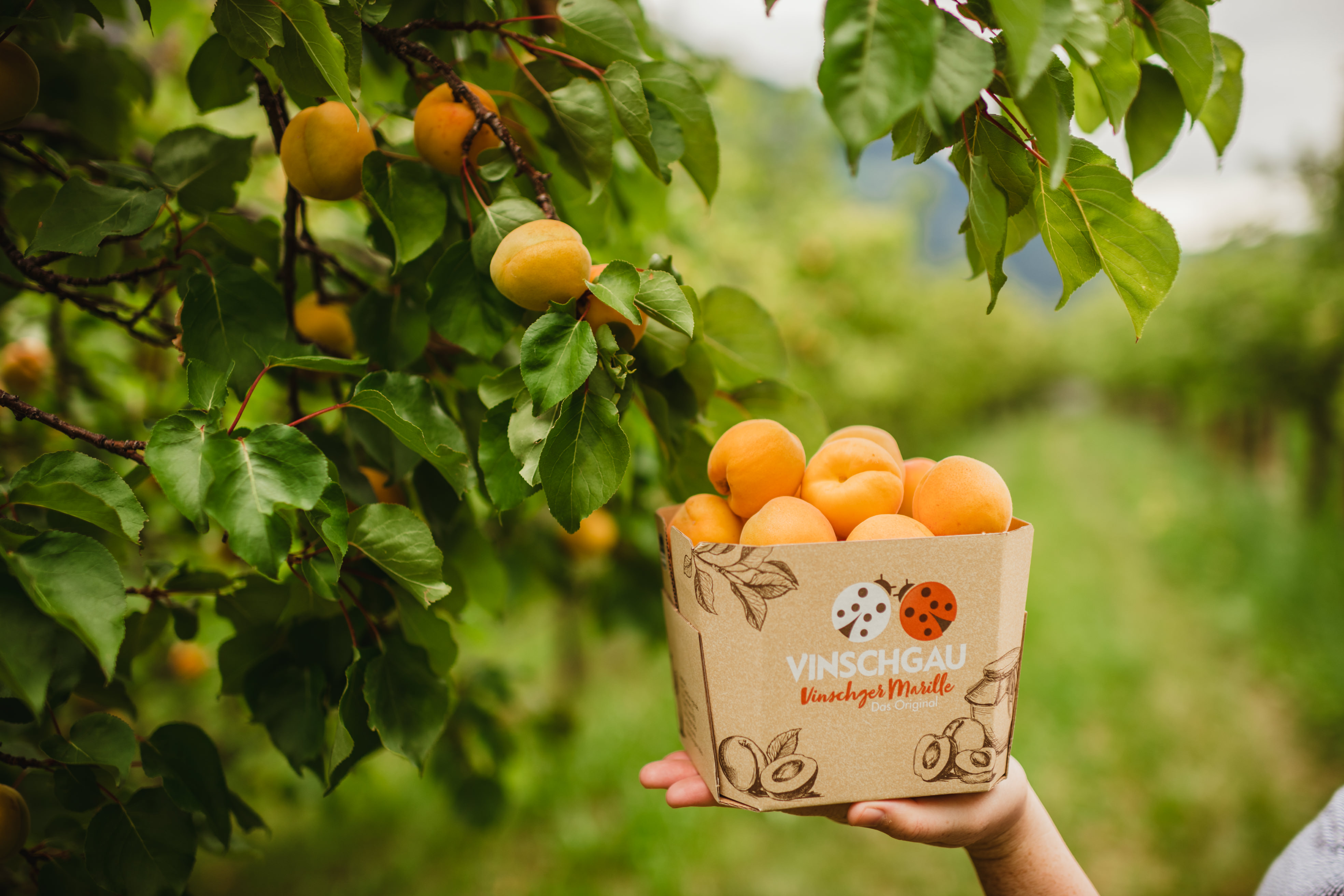 Um beim Kauf die Marillensorten aus dem Vinschgau optisch unterscheiden zu können, reicht ein Blick auf die Verpackung: Die Vinschger Bergmarillen sind im schwarzen Karton und die Original Vinschger Marille im naturfarbenen Karton verpackt. Erhältlich sind die frisch gepflückten Marillen in den Detailgeschäften der Vinschger Genossenschaften in Kastelbell, Latsch, Schlanders und Eyrs, in der Südtiroler Erdbeerwelt in Martell, im Vinschger Bauernladen in Naturns sowie im ausgewählten Fachhandel für Obst und Gemüse. Ob echte Vinschger Marillenmarmelade, Obstkuchen, Marillenknödel oder pur: Das intensive Aroma der erntefrischen Früchte lässt sich in jedem Fall auf vielerlei Arten genießen.