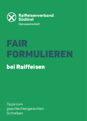 Den gesamten, vom Fachbereich Genossenschaftskommunikation und der Genossenschaft Exlibris ausgearbeiteten und grafisch aufbereiteten Leitfaden finden Sie im Handbuch "Fair formulieren" bei Raiffeisen (pdf).