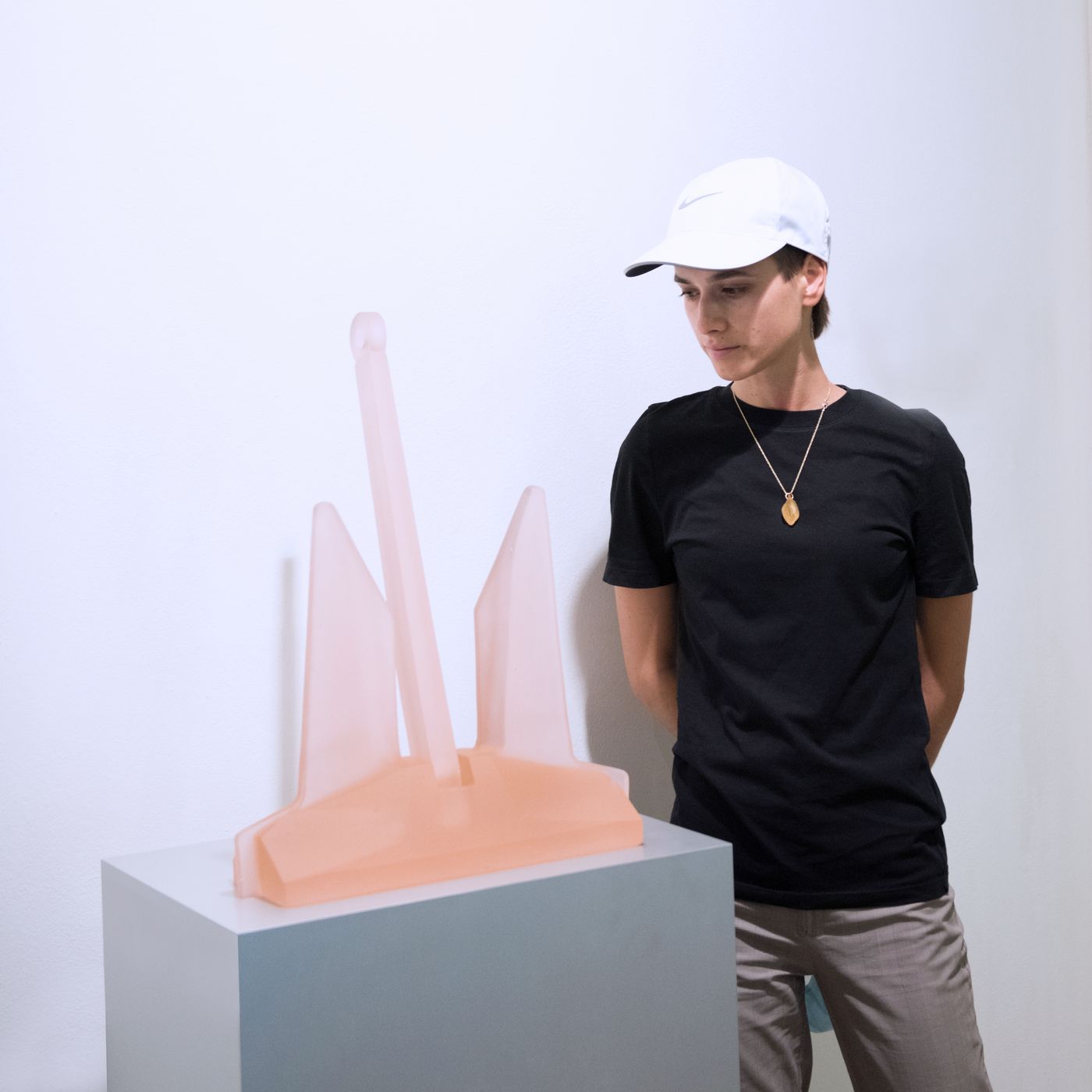 Im Glasanker kommen die Gegenpole Stabilität und Fragilität zum Tragen. Bei gleichzeitig starken Armen, suggeriert das rosafarbene Glas die Bedrohung und Unsicherheit der menschlichen Existenz – vor allem im Hinblick auf „das andere Geschlecht.“ In einer Krise, wie der derzeitigen Covid-19-Pandemie zeigt sich ein fragiles Gesellschaftssystem – ein zerbrechlicher Anker, der vor allem marginalisierte Gruppen nicht halten kann.