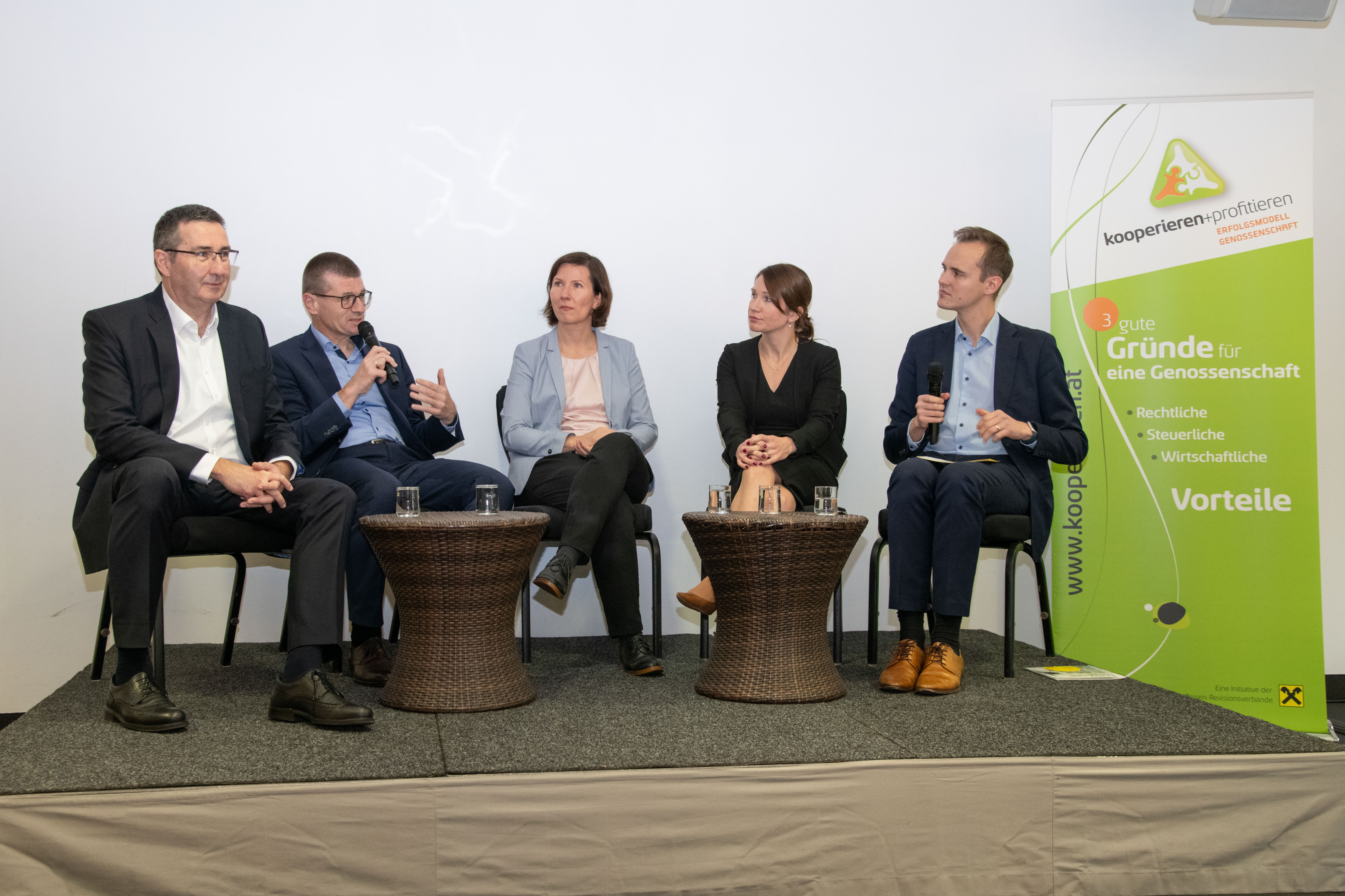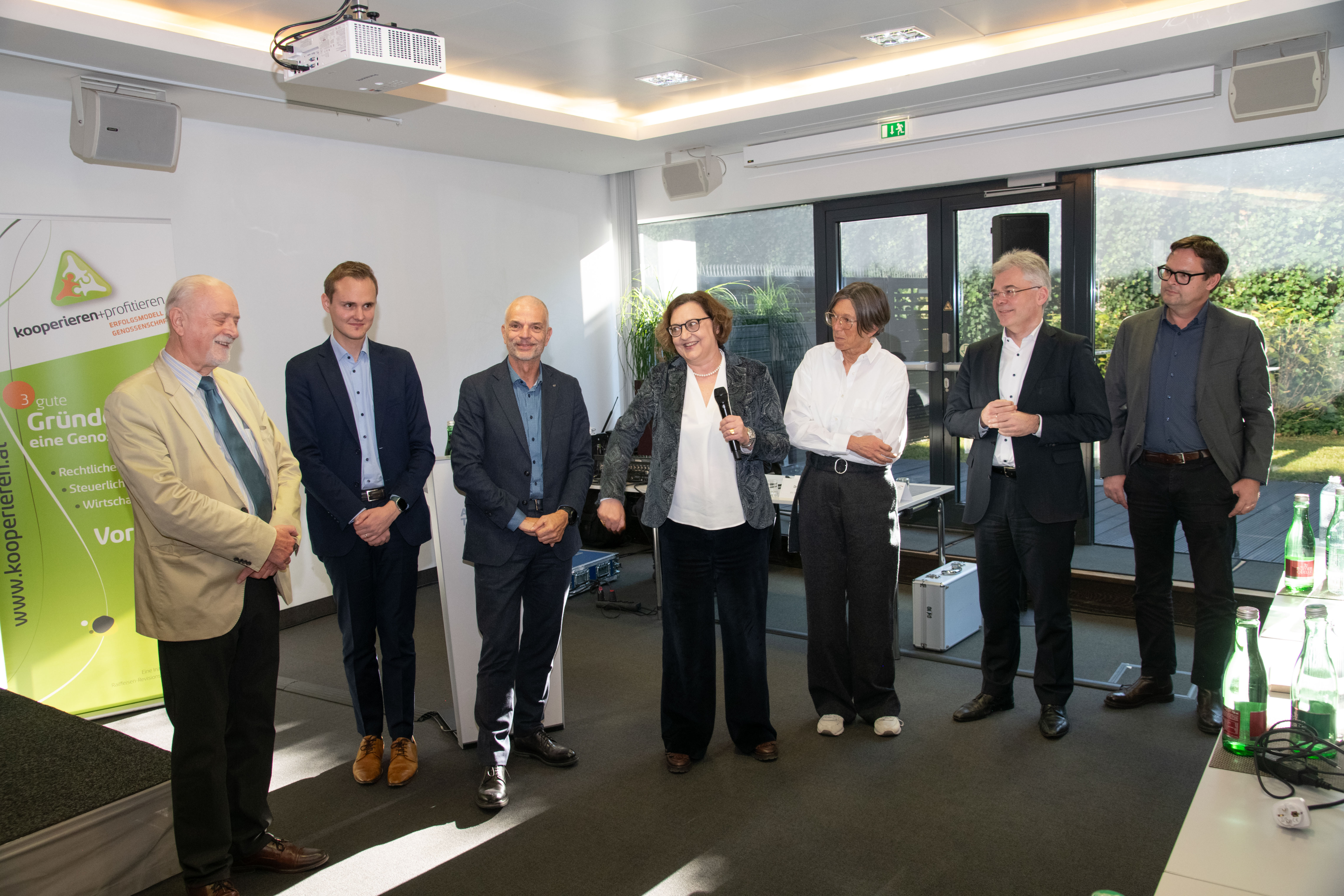 Nicht nur unter einem Dach arbeiten, sondern auch wohnen – dieses Konzept ermöglicht die Genossenschaft „Die HausWirtschaft“. Wie hier Genossenschaft „neu gedacht“ wird, erklärte bei der Tagung Angela Kohl, Geschäftsführerin und Vorstandsmitglied der HausWirtschaft e.Gen.: „Die Hauswirtschaft ist ein städtebauliches Projekt im zweiten Wiener Gemeindebezirk, wo wir den ursprünglichen Begriff der Hauswirtschaft und Hauswirtschaftslehre neu interpretieren. Wir wollten ein Haus schaffen, in dem Wohnen und Arbeiten sich auf Augenhöhe begegnen, wo wir durch die Nutzung von Synergien ressourcenschonend und nachhaltig agieren. Wir setzen auf ökologische Nachhaltigkeit, auf soziale Aspekte und vor allem auf viele Kooperationen, die sich in unserem Haus ergeben.“