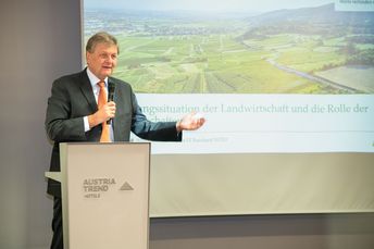 Reinhard Wolf, Generaldirektor der Raiffeisen Ware Austria RWA und Vorstandsmitglied der BayWa, ging auf die Versorgungssituation der Landwirtschaft und die Rolle der Genossenschaften ein. Kurzfristige Herausforderungen über Wochen und Monate seien etwas anderes als eine Krise über ein Jahr oder mehr. Die Versorgung der Landwirtschaft sowie die Versorgung der Menschen mit Grundnahrungsmitteln sieht Wolf derzeit europa- und weltweit aber insgesamt gesichert. Mit Blick auf die Szenarien der Zukunft wirke sich vor allem der Klimawandel auf die landwirtschaftliche Produktion massiv aus. „Langfristig stellt sich die Frage, wie ernähren wir die Menschen weltweit zu leistbaren Preisen“, betonte Wolf. Hier spielten Themen wie u. a. Züchtung und Gentechnik eine wichtige Rolle.