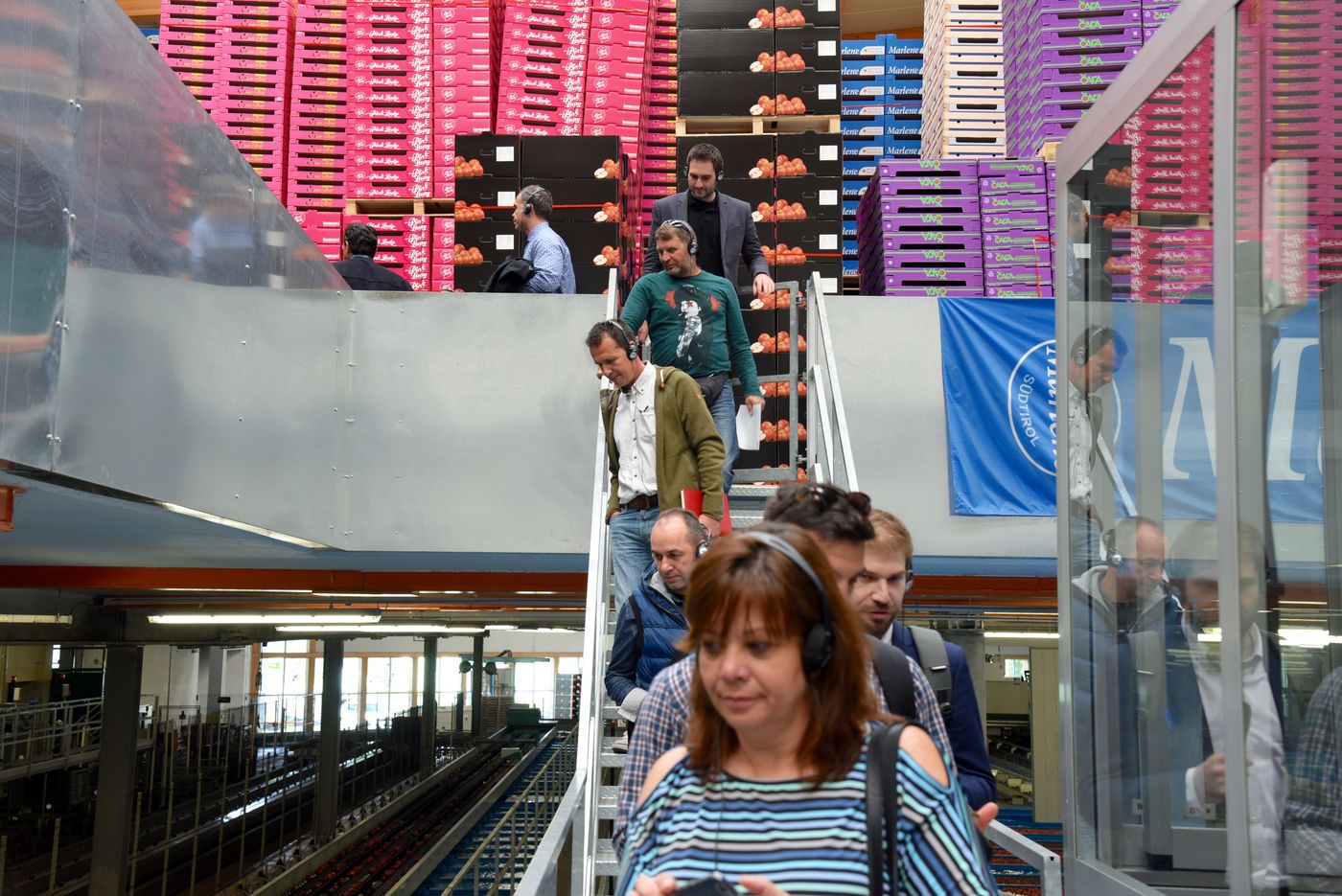 Herbert Von Leon, Obmann des Raiffeisenverbandes und gleichzeitig Obmann der Obstgenossenschaft CAFA in Meran, führte die BesucherInnen durch "seine" Obstgenossenschaft: "Wir sind in vielen Bereichen genossenschaftlich organisiert, nicht nur bei der Vermarktung, sondern auch bei der Beratung und im Bereich Risikoprävention.