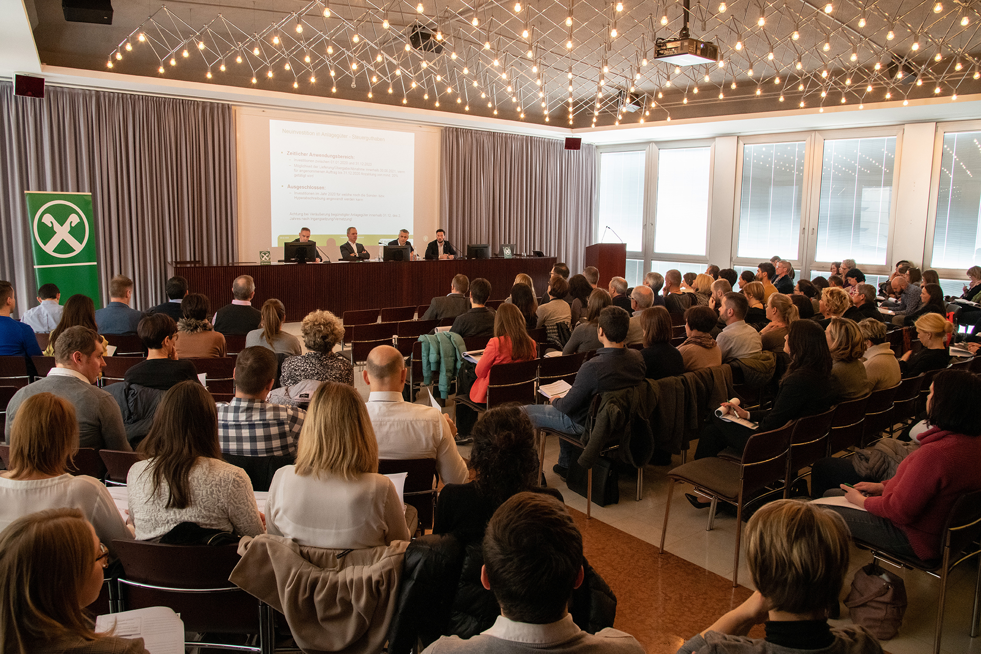 An der jährlichen Steuerfachtagung im vollbesetzten Pavillon des Raiffeisenhauses nahmen Vertreter der Obst- und Kellereigenossenschaften, Milchhöfe, Energie- und Wassergenossenschaften, Wohnbau- und Sozialgenossenschaften, Konsum- und Bezugsgenossenschaften sowie der sonstigen Genossenschaften teil. Dabei erläuterten die Fachberater des Bereichs Steuerrecht die neuesten steuerlichen Bestimmungen.