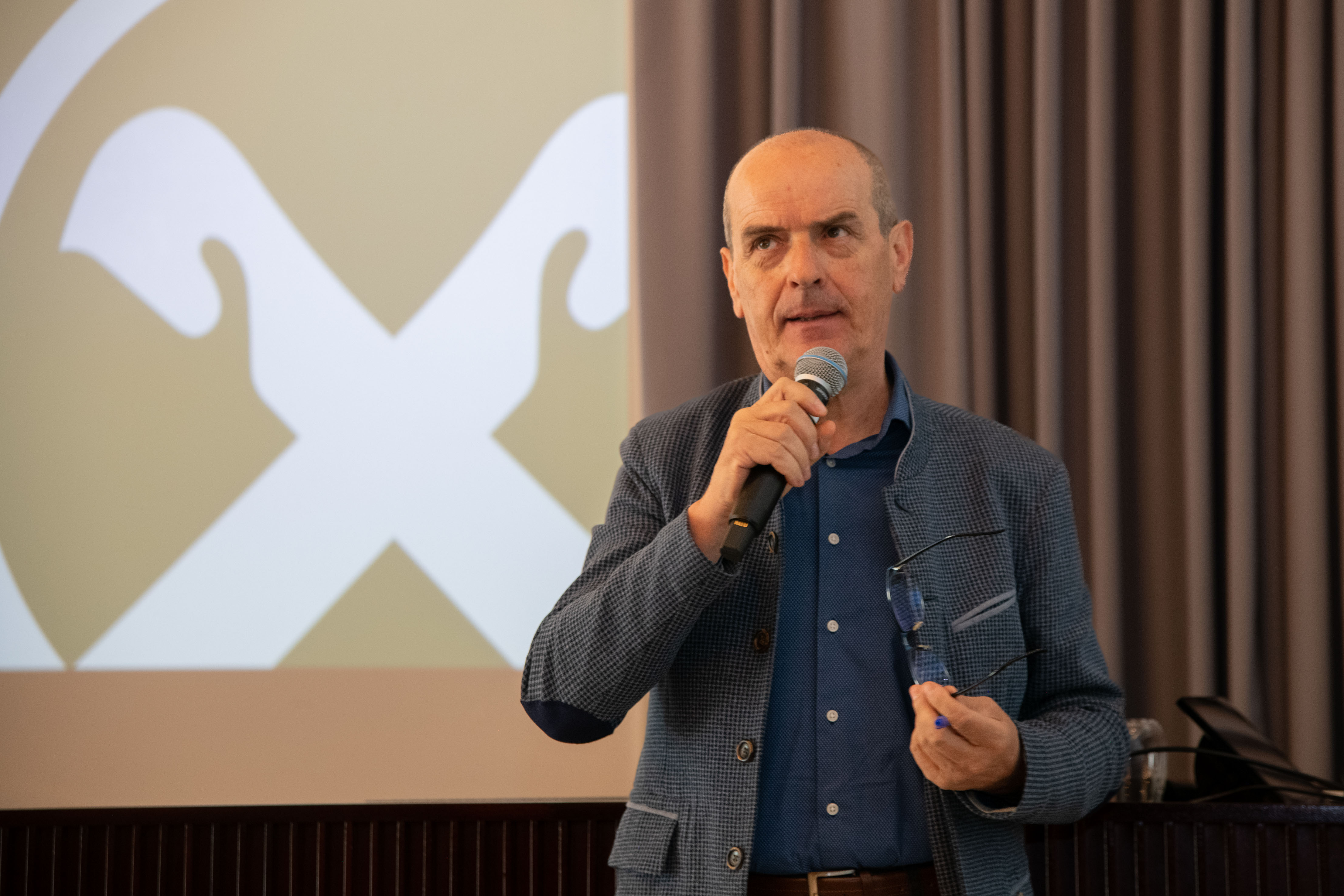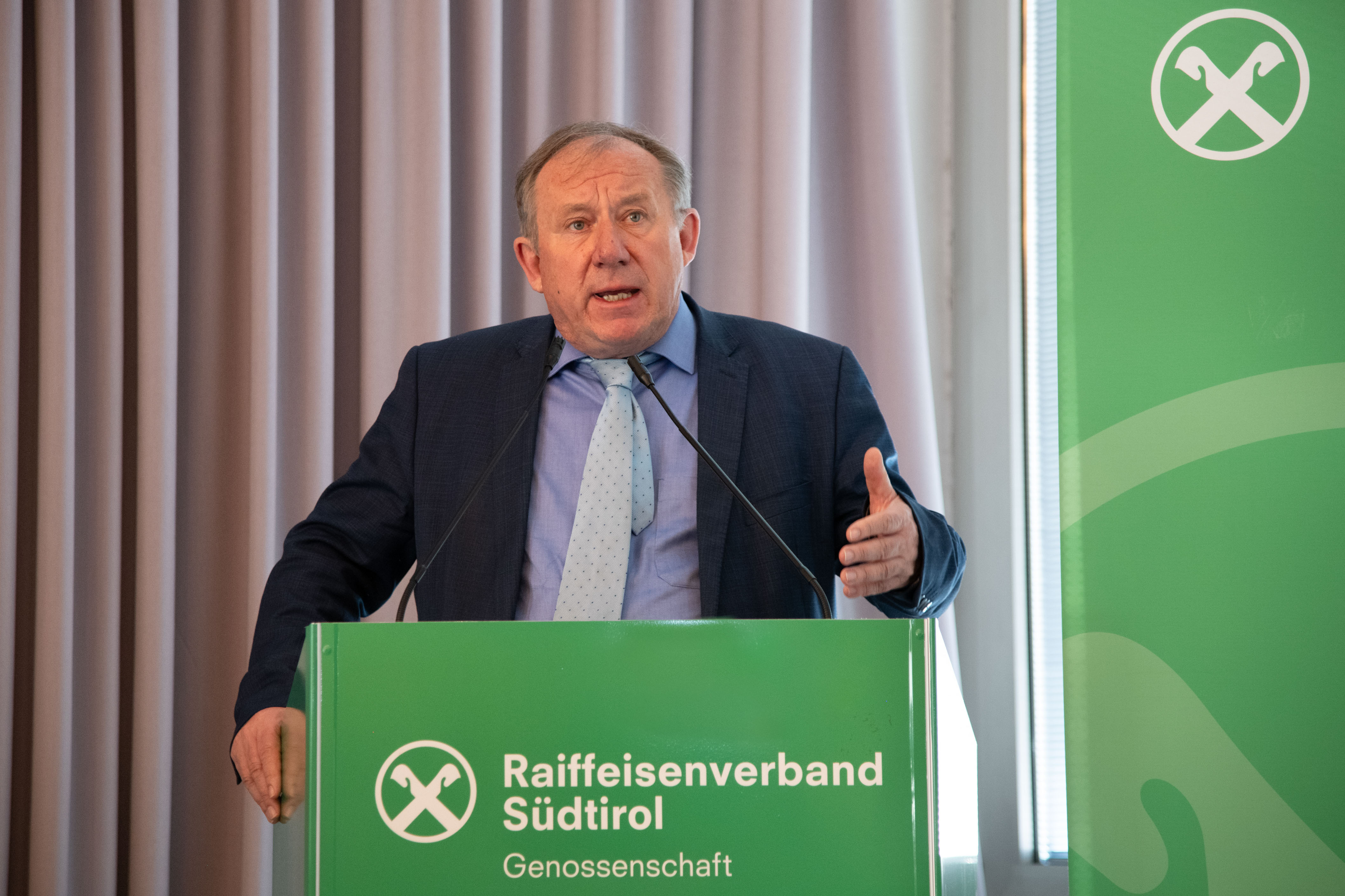 Herbert Von Leon, Obmann des Raiffeisenverbandes, konnte zur Tagung unter dem Motto „Die Vision für Landwirtschaft und Ernährung“ neben Landwirtschaftslandesrat Luis Walcher zahlreiche Vertreter*innen aus dem Bereich Landwirtschaft und Genossenschaftswesen, darunter unter anderem den Direktor der Landesabteilung Landwirtschaft Martin Pazeller und Bauernbund-Obmann Daniel Gasser. Als Hauptreferenten der Tagung, die von Florian Pedron moderiert wurde, hieß Von Leon Wolfgang Burtscher, Generaldirektor Landwirtschaft und ländliche Entwicklung der Europäischen Kommission, willkommen.