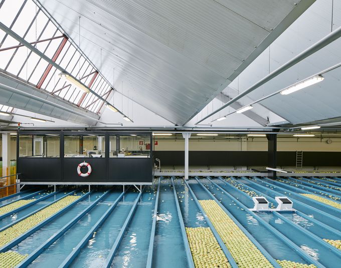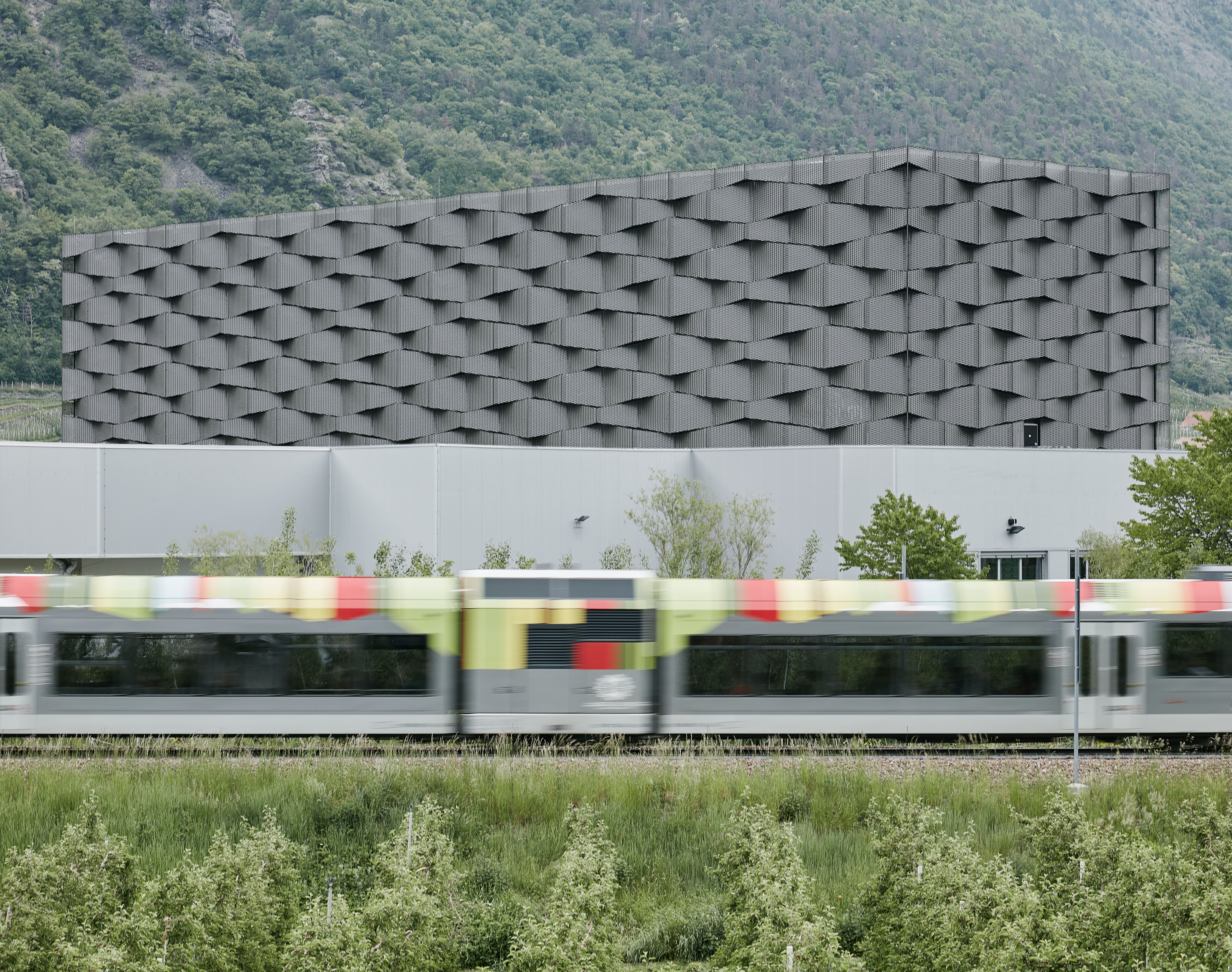 Bei der Auswahl der Technik konnte auf die Erfahrungswerte der Nachbargenossenschaften zurückgegriffen werden. Für die Gestaltung der Fassade wurde ein Ideenwettbewerb ausgerufen, gewonnen hat das Projekt der Architekt Hubert Schlögl aus Naturns. Schlögls Fassade aus geometrisch geflochtenen Bändern passt sich durch die gebrochene Oberflächenstruktur den Lichtverhältnissen an. Es entsteht so ein lebendiger Baukörper, der die Tages- und Jahreszeiten reflektiert. Die offene Flechtstruktur erinnert an die Tradition der Obstkörbe.