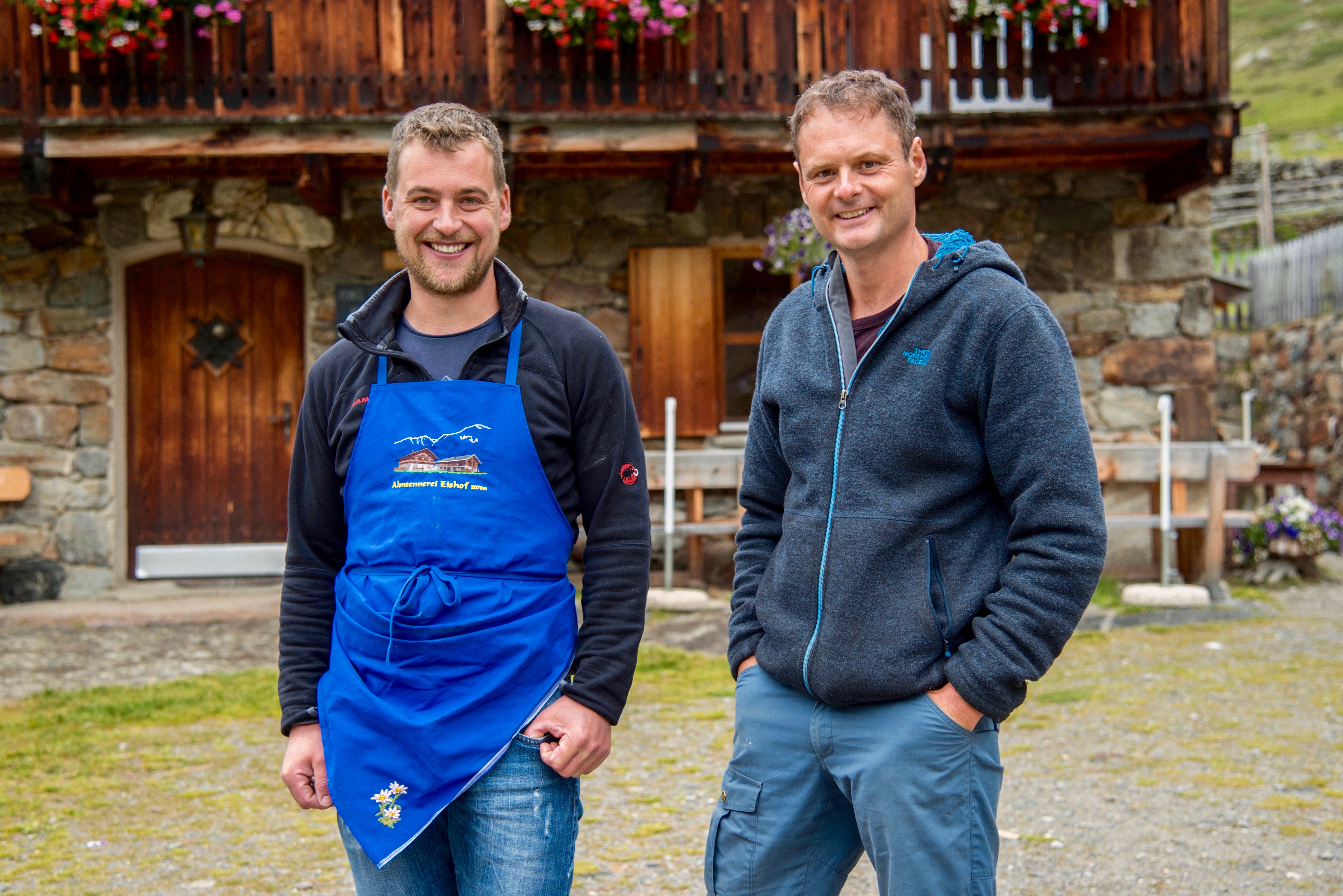 Die Eishofalm liegt auf über 2.000 Metern Meereshöhe und ist die hinterste Alm im Pfossental. Der junge Senner Erich Schaffler betreibt hier mit seiner Familie die „Almsennerei Eishof“. Vor über 20 Jahren hat sein Vater damit begonnen, aus der hochwertigen Almkuhmilch Käse herzustellen. Seit einigen Jahren macht nun der junge Senner die gesamte Verarbeitung. „Eine echte Leidenschaft von mir“, sagt der junge Senner, der zuhause im Passeiertal noch einen Hof betreibt. Die 45 Kühe auf der Eishofalm liefern über die gesamte Almsaison an die 40.000 Liter Milch. Daraus macht der Senner auf der Eishofalm etwa 4000 kg Käse oder weit über 1000 Käseleibe.
