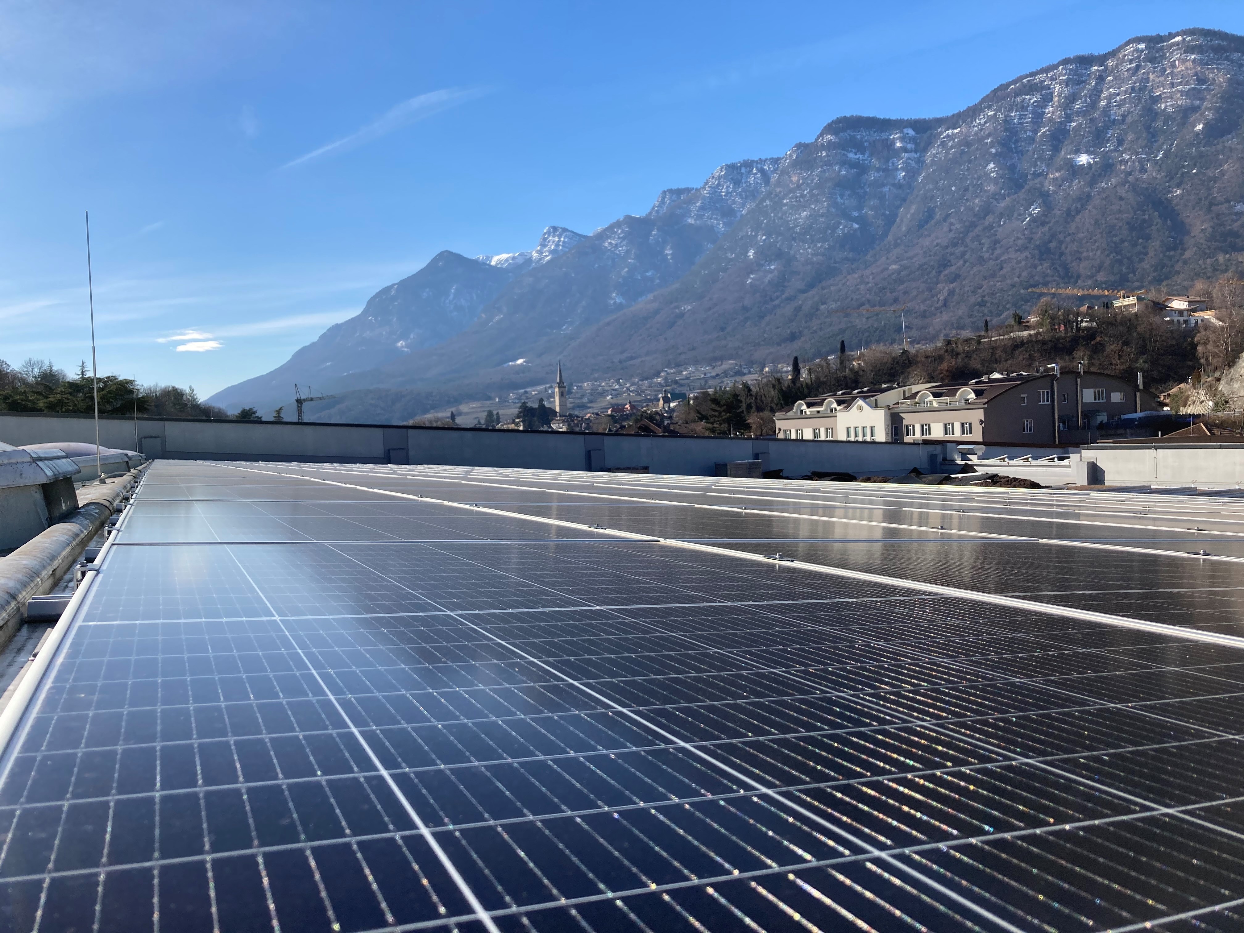 Seit jeher sorgt die Kraft der Sonne dafür, dass die Trauben durch Photosynthese aus Wasser und CO2 Zucker aufbauen. Seit Mitte Februar stellt die Kraft der Sonne - durch die neue 1.800 Quadratmeter große Photovoltaikanlage der Kellerei Kaltern - auch die Energie für die Maschinen zur Verfügung, mit deren Hilfe die Trauben verarbeitet und der Wein gekühlt und abgefüllt wird. Fast 50 Prozent des jährlichen Strombedarfs der Kellerei soll in Zukunft von den Kollektoren auf dem Dach des neuen Produktionsgebäudes kommen. Die neue Anlage hat eine Nennleistung von 370 Kwp, der Jahresertrag liegt bei 362.753 kWh.