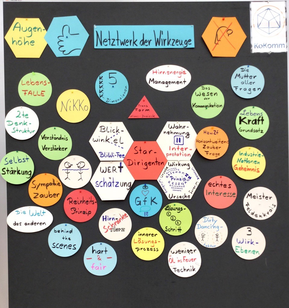 „KoKomm bietet Lösungen an, um Einschränkungen im Alltag überwinden und komplexe Situationen meistern zu können. Gemeint sind viele Situationen, in denen Menschen mit Ärger, Abwertungen, Beleidigungen, Vorwürfen, Verboten, Erpressungen, Strafen und Konflikte reagieren. Derartige Reaktionen behindern den Fluss von produktiver Schaffenskraft, Freude und Lebensenergie und beeinflussen die Ergebnisse negativ.“