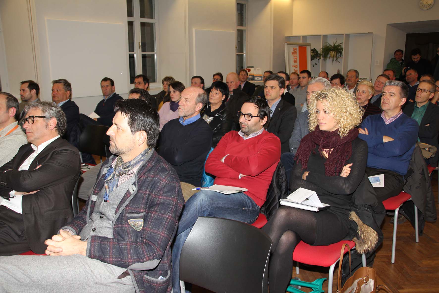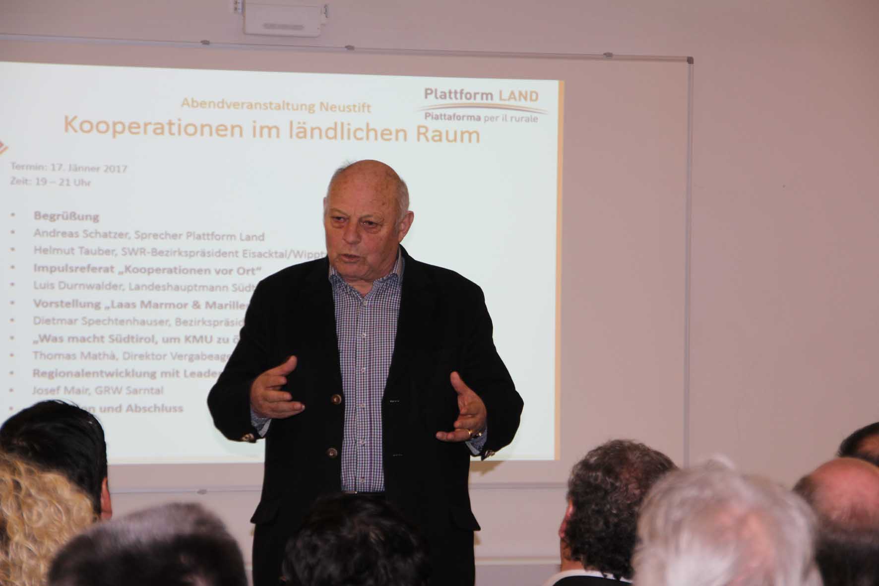 Auf die Ziele der Plattform Land machte deren Sprecher Andreas Schatzer aufmerksam. Er unterstrich die Notwendigkeit der Zusammenarbeit auf Gemeinde- und Bezirksebene. Thomas Mathà schilderte, wie Klein- und Mittelunternehmen zu öffentlichen Aufträgen kommen können.