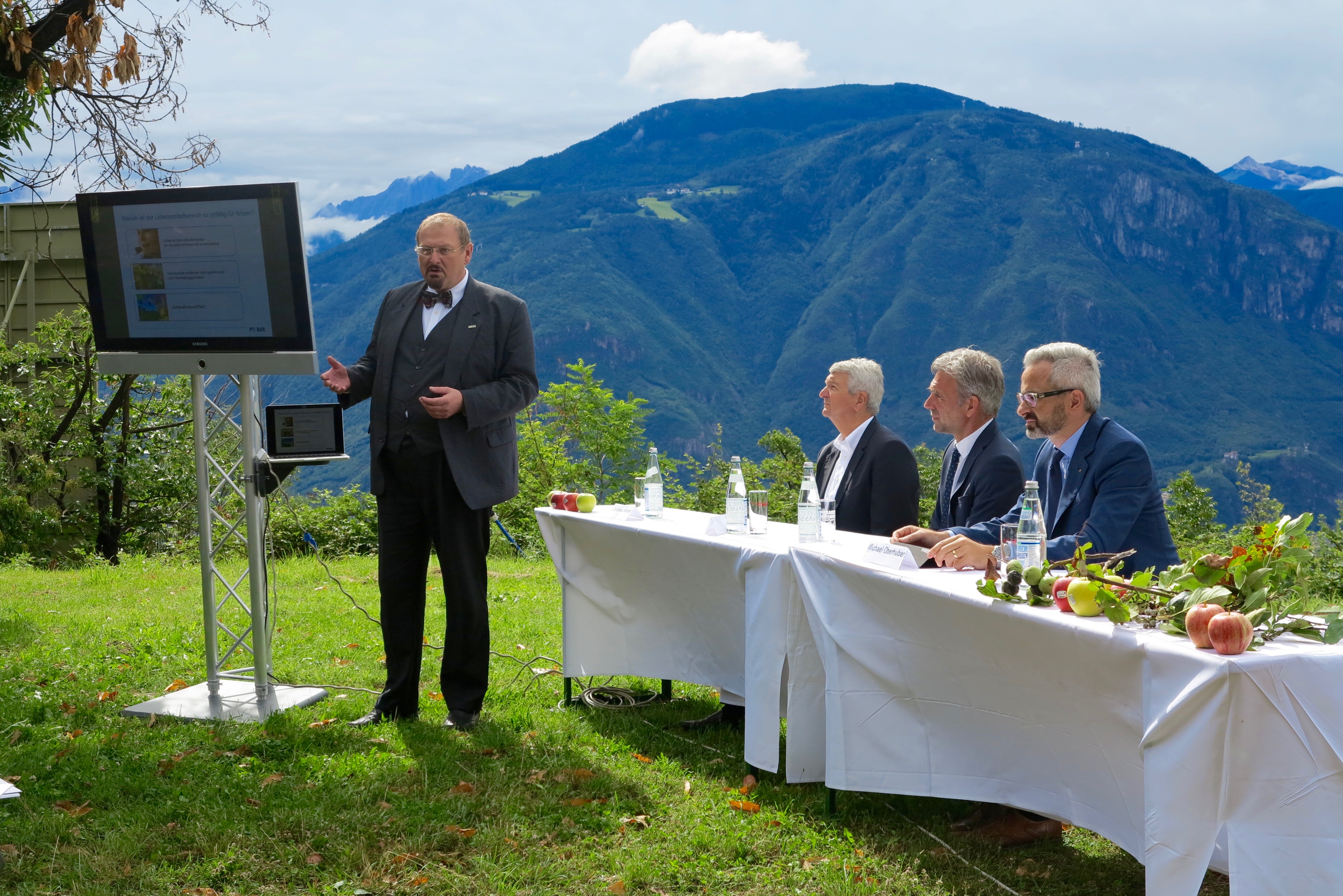 Die enorme Entwicklung im Bereich Technik und Pflanzenschutz mache dies möglich bestätigt Prof. Andreas Hensel, Präsident des Deutschen Bundesinstitutes für Risikobewertung. Er war auf Einladung des Land- und Forstwirtschaftlichen Versuchszentrums Laimburg, des Landesressorts für Landwirtschaft, Forstwirtschaft, Zivilschutz und Gemeinden und des Südtiroler Apfelkonsortiums zu einem Austausch unter Experten und Wissenschaftlern und zum Pressegespräch nach Südtirol gekommen.
