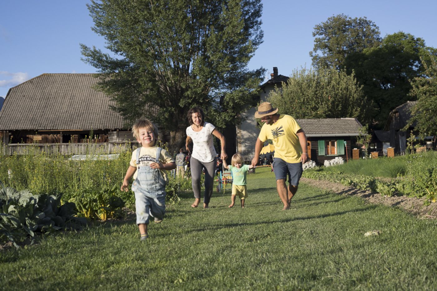 Der Tschogglerhof in Reischach wird von Sabine Oberheinricher und Marco Perri betrieben, einer jungen Familie die mit den Schwerpunkten Gemüsebau und Getreide, Hühnerhaltung und Holzwirtschaft sowie dem Abo-Kisten-System „Bauernbox“ eine blühende Landwirtschaft aufgebaut hat, in nur fünf Jahren. Der Tschogglerhof ging von Großvater Oberheinricher auf Sabines Mutter über und weiter an die junge Landwirtin selbst. Mit Gärtner Marco Perri an ihrer Seite entstand der Plan einer Gemüselandwirschaft, die mit eigenem Hühnermist und Grünschnitt eine reiche Vielfalt an Kulturpflanzen nährt. Teich, Nistkästen, Hecken und Blühflächen fördern den biologischen Artenreichtum und mit der Haltung von 50 Hühnern und zwei Hähnen war auch ein weiteres Standbein erfolgreich eingeführt. Die „Bauernbox“ wird an 50 Haushalte ausgeliefert, und mit der Präsenz am Bauernmarkt werden die hofeigenen Produkte auf nachhaltig-empathische Weise in den regionalen Wirtschaftskreislauf eingespeist.