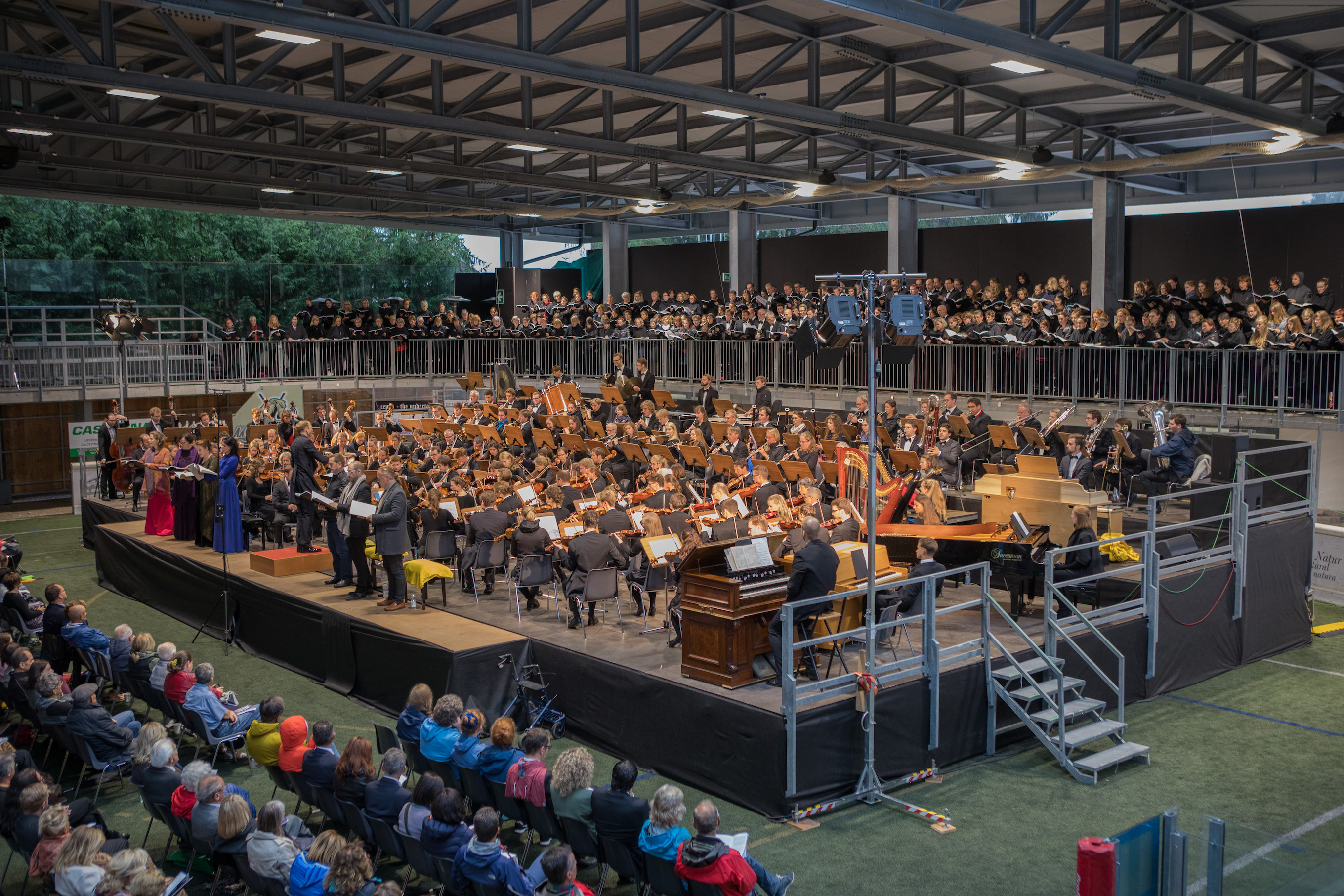 An die 450 Personen, darunter zwei gemischte Chöre, ein Kinderchor und sieben Gesangssolisten, nahmen an der Gemeinschaftsproduktion der Gustav Mahler Musikwochen, der Festspiele Südtirol und des Musik Sommer Pustertal teil.