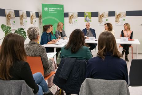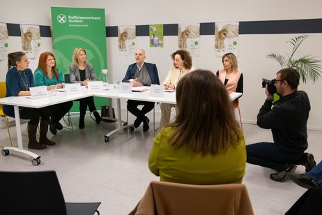 Im Rahmen des Medienfrühstücks gaben Petra Bisaglia, Geschäftsführerin der Sozialgenossenschaft Coccinella, Sabine Cagol, Obfrau der Sozialgenossenschaft IARTS und Ursula Thaler, Obfrau der Sozialgenossenschaft humanitas24, Einblick in ihre Arbeit.