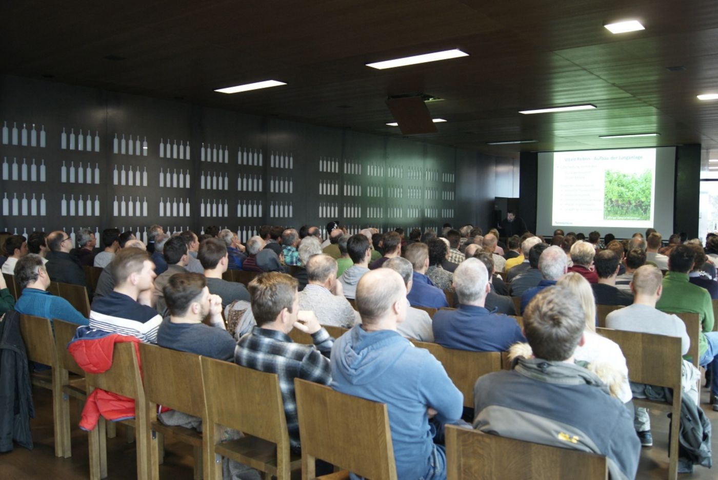 Paul Hafner vom Südtiroler Beratungsring sprach über die Voraussetzung für hohe Traubenqualität und Ertragssicherheit. Ihm zufolge beginnt die Gesundheit und Qualität der Reben bereits bei der Auswahl der geeigneten Sorten und Klone entsprechend je nach Standort. Neben dem Schnitt und der Bewässerung ist für ein ausgewogenes Wachstum auch die ausreichende Nährstoffversorgung über den gut strukturierten Boden notwendig. Das Ziel sind homogene Anlagen mit einer ausgeglichenen Stockbelastung.