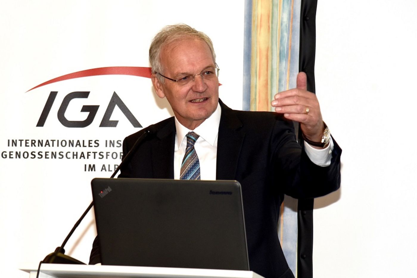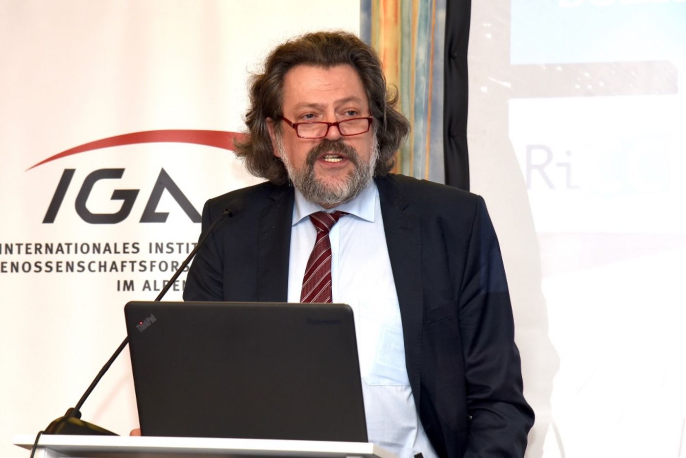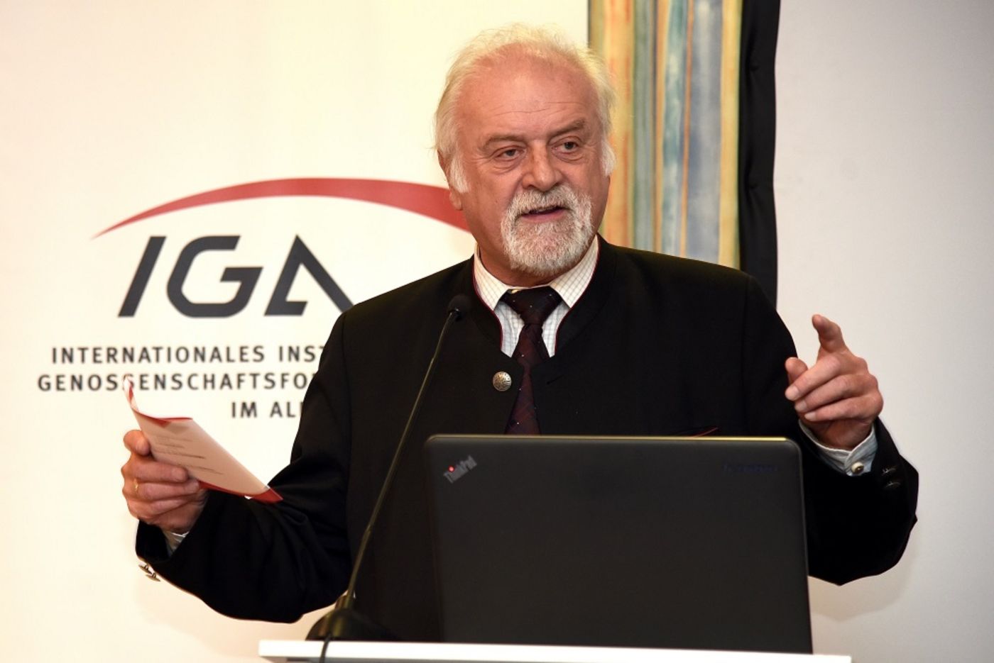 IGA-Vorsitzender Arnulf Perkouniggbetonte gleich zu Beginn, dass die erfolgte Ernennung der Idee und Praxis der Genossenschaft zum Unesco-Weltkulturerbe kein Abgesang auf die über 150-jährige erfolgreiche Unternehmensform sei, sondern im Gegenteil eine Anerkennung für ihre Bedeutung und Wirkungskraft. Dietmar Rößl, Vorstand des Instituts für KMU-Management und Leiter des Forschungsinstituts für Kooperationen und Genossenschaften an der Wirtschaftsuniversität Wien, sprach zum Thema "Genossenschaften als Motor für unternehmerische und soziale Innovationen". Rößl erinnerte an die Sozialreformer F. W. Raiffeisen und Hermann Schulze-Delitzsch, die laufend soziale und unternehmerische Innovationen umgesetzt hätten. Genossenschaften sind keine Selbstläufer. Vielmehr muss der genossenschaftliche Förderauftrag auf die Anforderungen in der Gesellschaft ständig hin interpretiert werden.