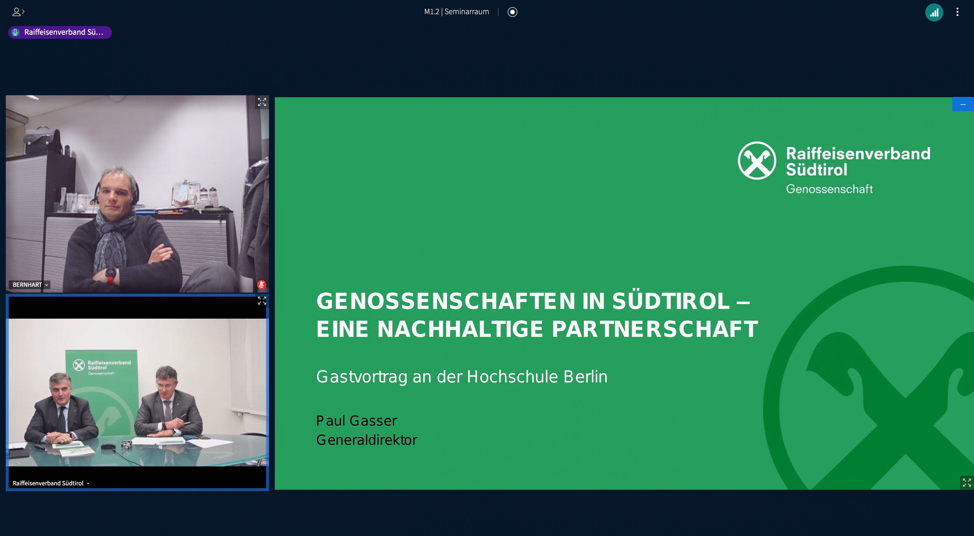 Dass Genossenschaft und Nachhaltigkeit zusammengehören, war den Studierenden des Masterstudiengangs „Pubblic Management“ an der Berliner Hochschule spätestens nach diesem Online-Vortrag klar.