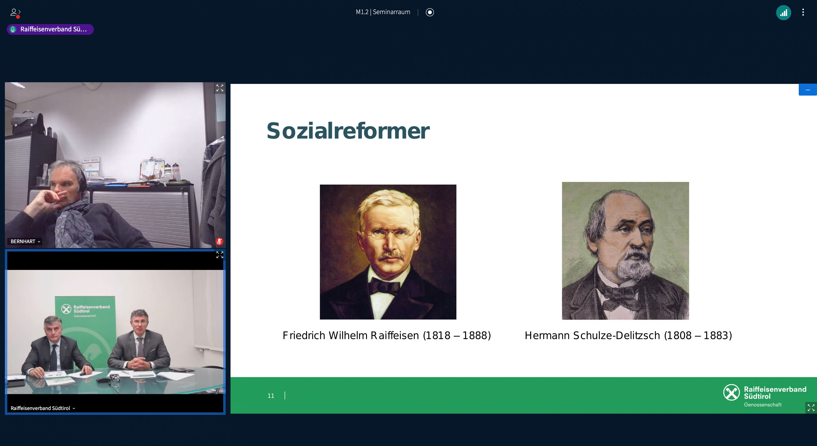 Josef Bernhart, Dozent des Masterstudiengangs und Leiter des Instituts für Public Management der EURAC Bozen, fasste die Ausführungen der beiden Vertreter des Raiffeisenverbandes Südtirol folgendermaßen zusammen: „Nachhaltigkeit liegt in der DNA von Genossenschaften und ist in der Geschäftsphilosophie von Genossenschaften enthalten. Die Vorteile und die Nachhaltigkeit der kundennahen kleineren Strukturen und deren Überlebensfähigkeit ist mittlerweile ausreichend belegt. Mit der Errichtung eines institutsbezogenen Sicherungssystems für die Raiffeisenkassen und damit des Erhalts ihrer geschäftlichen Eigenständigkeit ist es gelungen, dies auch langfristig zu sichern.“ Paul Gasser und Andreas Mair am Tinkhof hätten die Genossenschaften in ihrer Geschichte, Vision und Bedeutung für eine nachhaltige Zukunft erläutert. Sie seien Motivatoren und erfolgreiche Beispiele, die den Mut und die Motivation haben, für die Prinzipien einer großen Idee zu kämpfen.