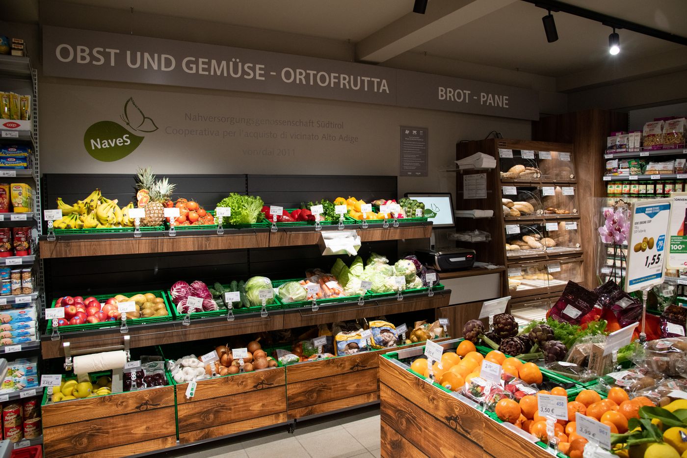 Der neue Dorfladen in der Gampenstraße 24 wurde in den Räumlichkeiten des ehemaligen Gemischtwarengeschäfts der Familie Kiem eröffnet und befindet sich im unmittelbaren Dorfzentrum. Betrieben wird das Geschäft von der Südtiroler Nahversorgungsgenossenschaft NaveS, eine Konsumgenossenschaft, die vom Raiffeisenverband, Bauernbund, KVW und Gemeindenverband getragen wird.