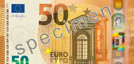 In Anlehnung an den bereits erneuerten 20er-Schein wurde nun auch der Entwurf des 50-Euro-Geldscheins überarbeitet und fälschungssicherer gemacht: der Wert des Scheins ist als glänzende "Smaragd-Zahl" aufgedruckt, die ihre Farbe ändert, wenn man die Banknote etwas neigt. Das Wasserzeichen zeigt ein Porträt der griechischen Mythenfigur Europa, der Namensgeberin der neuen Banknotenserie: "Europa-Serie".