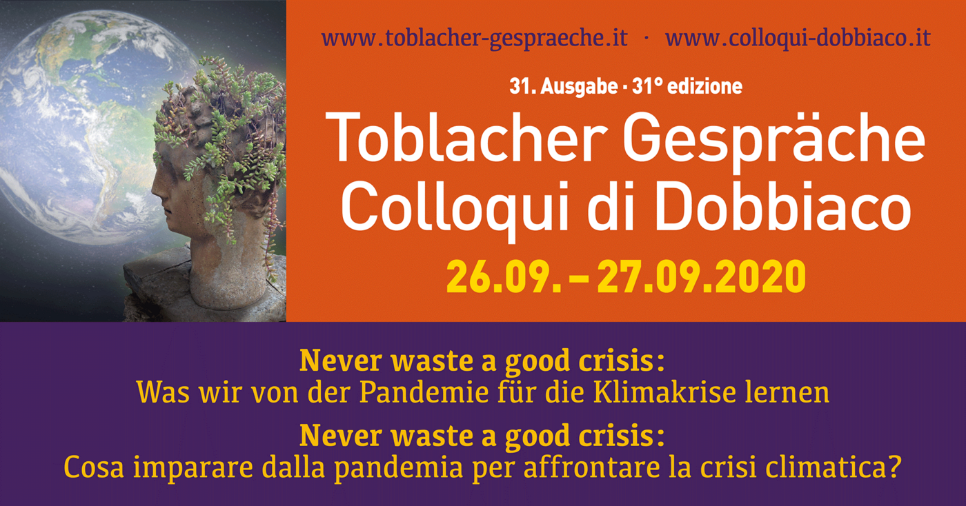 Geht es nach ein paar Monaten so weiter bis bisher? Oder erleben wir einen Kulturwandel, in dem alles seine Richtung ändert und eine völlig neue Zukunft entsteht? Was bedeutet die Pandemie für die epochale Krise des Klimachaos, die auch die kommenden Jahrzehnte bestimmen wird? Dies sind die Kernfragen auf der heurigen Ausgabe der Toblacher Gespräche und der Leitung von Karl-Ludwig Schibel.