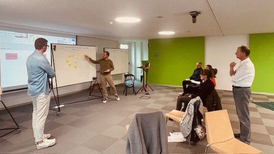 Vom 08. bis 10. Oktober 2024 stand das praxisorientierte Arbeiten im Mittelpunkt. Beim Praxis-Workshop Design Thinking ging es darum innovative Geschäftsmodelle zu entwickeln, frische Ideen zu generieren und Probleme aus der Sicht der Anwenderinnen und Anwender zu lösen. Der Workshop, geleitet von Alexander Wallnöfer, zertifizierter Design Thinking Coach und Experte für digitale Transformation und agiles Management derKonverto AG, bot den Teilnehmerinnen und Teilnehmern die Möglichkeit, neue kreative Denkansätze kennenzulernen: „Alles konnte durchgespielt und ausprobiert werden“, betonte Wallnöfer, der großen Wert darauf legte, die praktischen Aspekte der Methodik in den Vordergrund zu rücken.