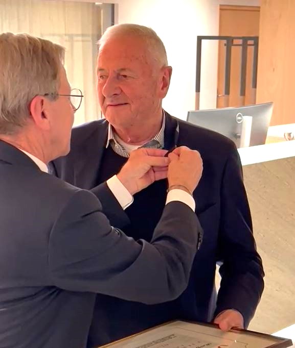 Die Ehrennadel in Gold für Alfons Pezzei wurde auf Antrag der Cassa Raiffeisen Val Badia verliehen.