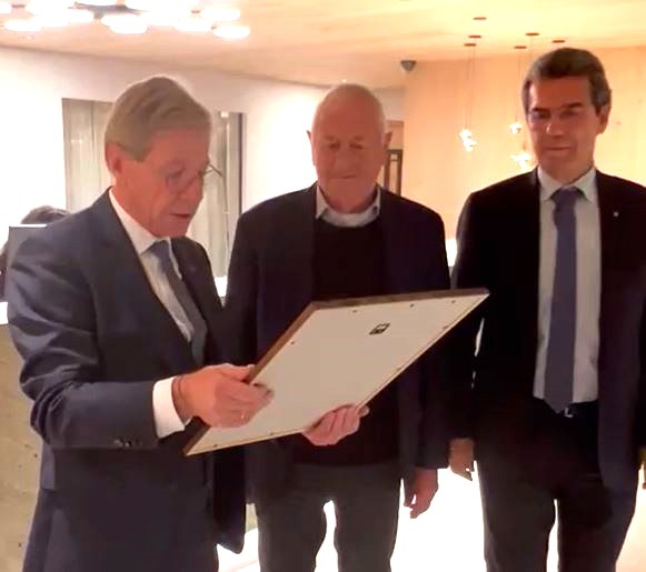 Zu den Gratulanten gehörten u. a. Generaldirektor Robert Zampieri sowie der Obmann der Cassa Raiffeisen Val Badia Georg Mutschlechner mit Direktor Hubert Obwegs und den Mitglieder des Verwaltungs- und Aufsichtsrates.