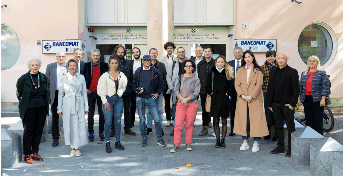 Die Künstlerinnen und Künstler, der Kunstbeirat, Präsident und Generaldirektor und Verwaltungsrätin der Raiffeisen Landesbank, LR Philipp Achammer, Geschäftsführer von Spherea3D (Foto: Damian Pertoll)