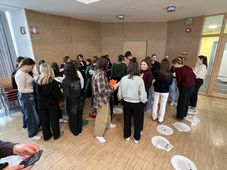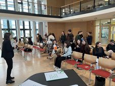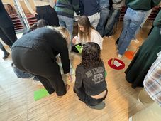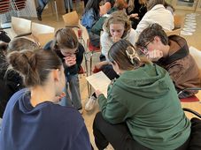 Der Spielverlauf: In Kleingruppen folgen die Schüler*innen einem Parcours, der anhand eines fiktiven Lebenslaufs die verschiedenen Phasen von Kindheit und Jugend über Arbeit und Freizeit bis hin zu Alter und Pflege durchläuft. Mithilfe von Spielkarten rücken die Spieler*innen auf den Feldern vor und lernen unterschiedliche Raiffeisen Sozialgenossenschaften, ihre Tätigkeiten, Leistungen und Produkte sowie entsprechend Berufsbilder kennen. Am Ende des Parcours, der unterschiedliche, fiktive Lebensläufe nachzeichnet, konnten die Schülerinnen und Schüler das im Spiel gesammelte Wissen beim Quiz einbringen.