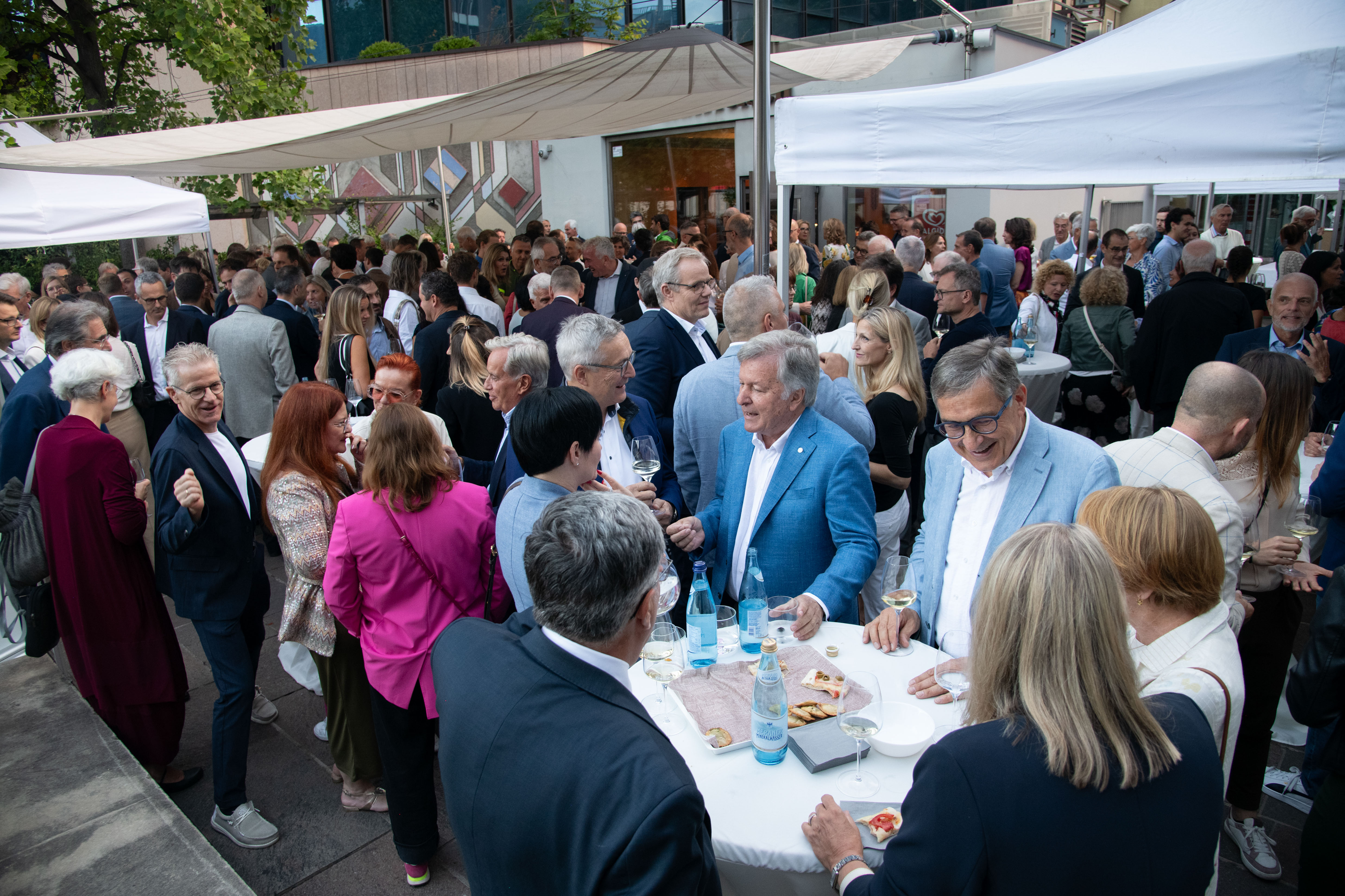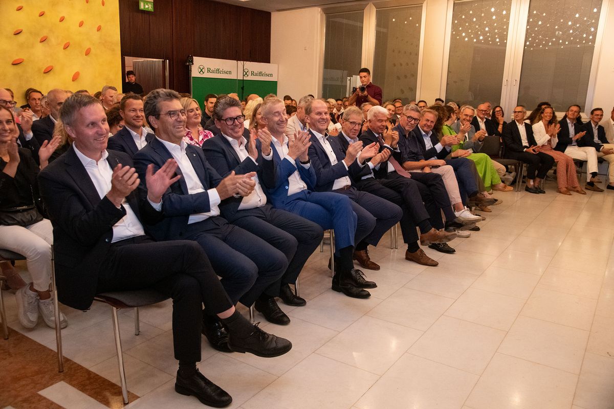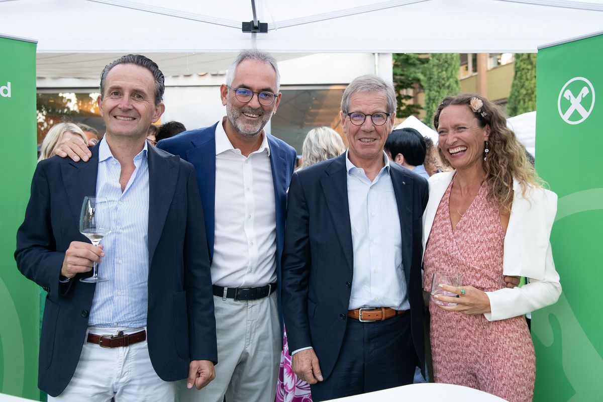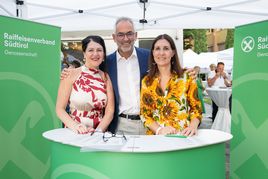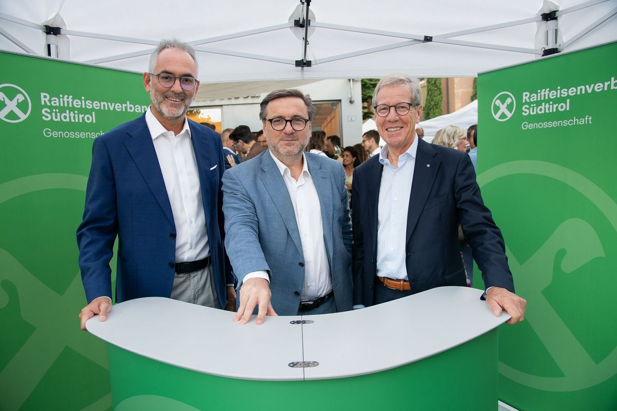 Verbandsobmann Herbert Von Leon und Generaldirektor Robert Zampieri konnten zum „Raiffeisen Summer Apéro“ im Raiffeisenhaus in Bozen über 300 Gäste aus Wirtschaft, Politik und Gesellschaft und aus dem Genossenschaftswesen begrüßen. Zu den Gästen zählten unter anderem EU-Parlamentarier Herbert Dorfmann, Senator Meinhard Durnwalder und die Kammerabgeordneten Renate Gebhard und Dieter Steger, Landtagspräsident Arnold Schuler, die Landesräte Hubert Messner, Ulli Mair und Luis Walcher, Landtagsabgeordneter Franz Locher, Zivilschutzchef Klaus Unterweger, Obmann des Südtiroler Bauernbundes Daniel Gasser, hds-Präsident Philipp Moser, Direktor des HGV Raffael Mooswalder, lvh-Vizpräsident Hannes Mussak, Handelskammerpräsident Michl Ebner, der neue Direktor des Unternehmerverbandes Mirco Marchiodi, Generaldirektor der Südtiroler Landesverwaltung Alexander Steiner, der Direktor der Freien Universität Bozen Günther Mathà, Eurac Research-Präsident Roland Psenner, der Direktor der Südtiroler Sparkasse Nicola Calabrò und viele andere mehr.