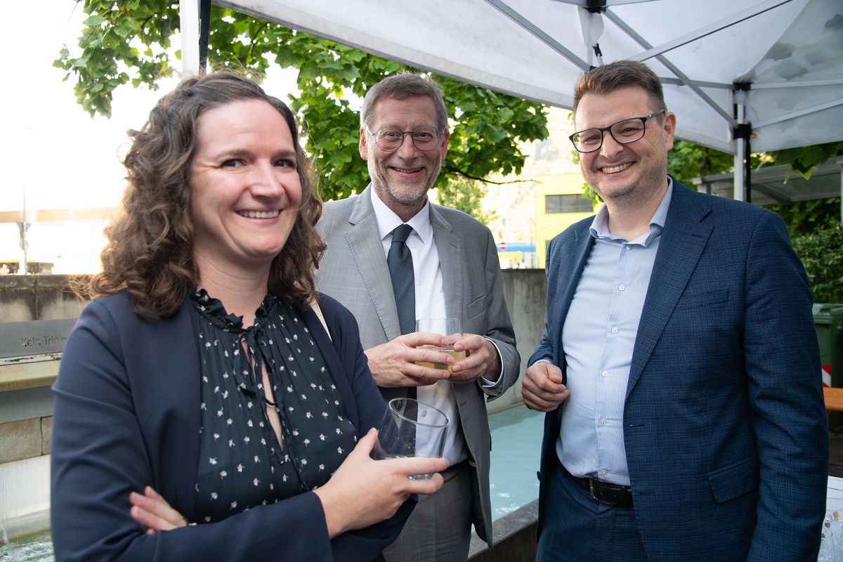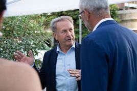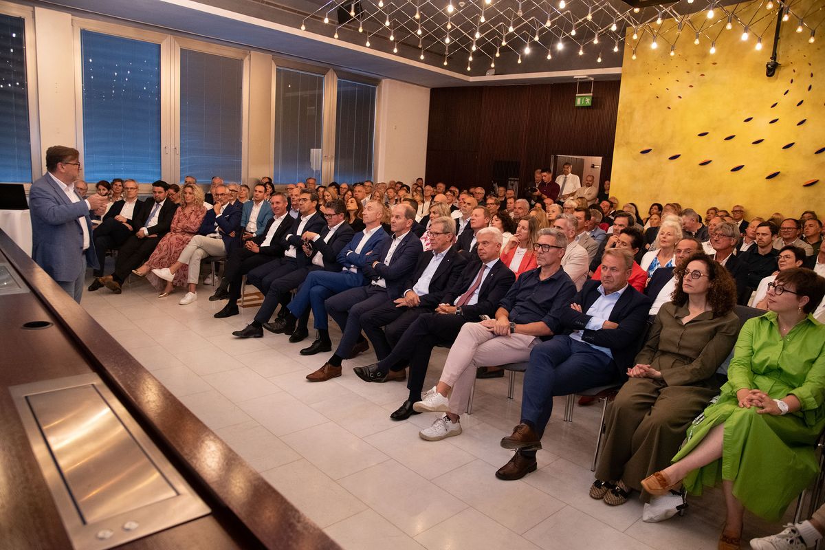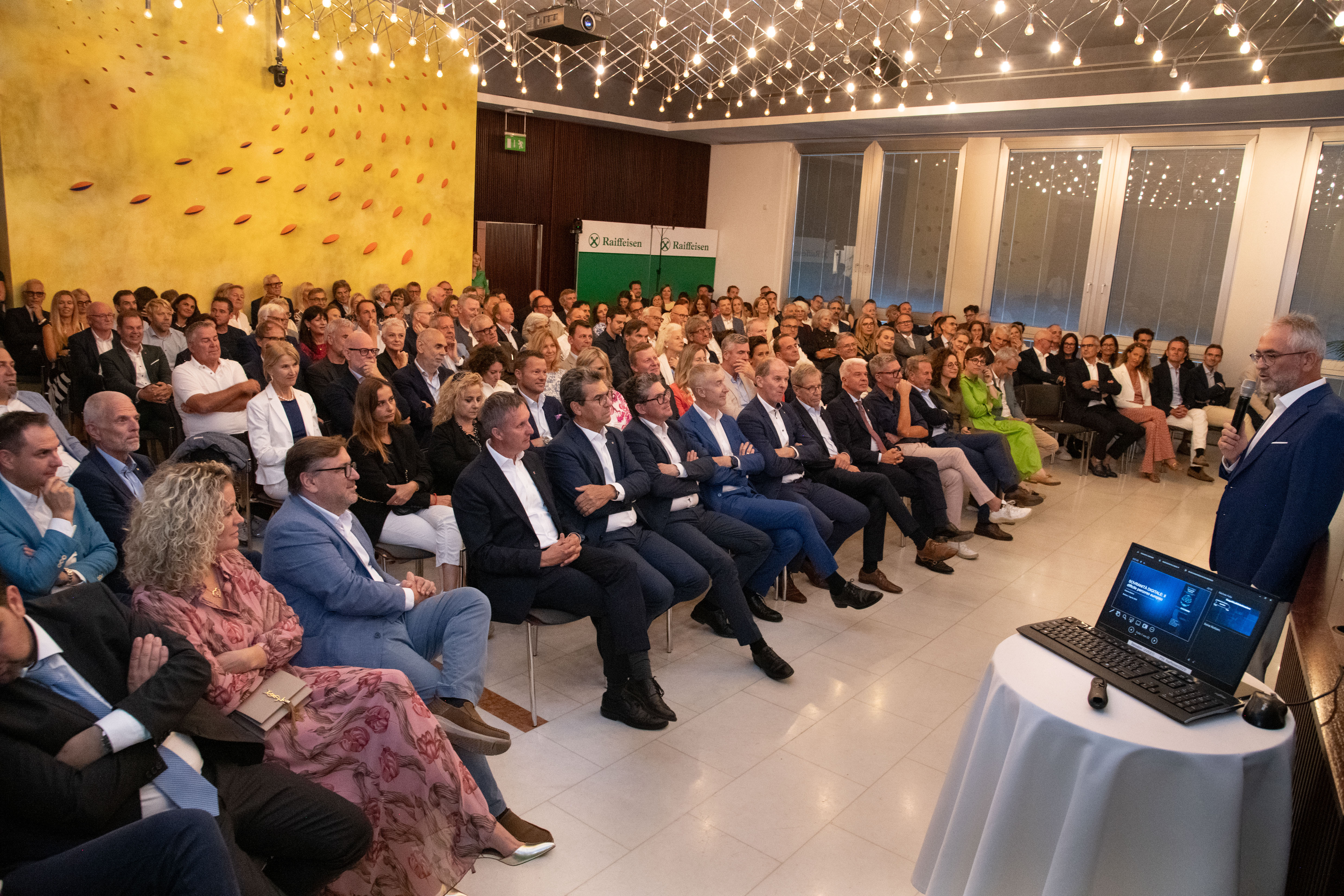 Verbandsobmann Herbert Von Leon und Generaldirektor Robert Zampieri konnten zum „Raiffeisen Summer Apéro“ im Raiffeisenhaus in Bozen über 300 Gäste aus Wirtschaft, Politik und Gesellschaft und aus dem Genossenschaftswesen begrüßen. Zu den Gästen zählten unter anderem EU-Parlamentarier Herbert Dorfmann, Senator Meinhard Durnwalder und die Kammerabgeordneten Renate Gebhard und Dieter Steger, Landtagspräsident Arnold Schuler, die Landesräte Hubert Messner, Ulli Mair und Luis Walcher, Landtagsabgeordneter Franz Locher, Zivilschutzchef Klaus Unterweger, Obmann des Südtiroler Bauernbundes Daniel Gasser, hds-Präsident Philipp Moser, Direktor des HGV Raffael Mooswalder, lvh-Vizpräsident Hannes Mussak, Handelskammerpräsident Michl Ebner, der neue Direktor des Unternehmerverbandes Mirco Marchiodi, Generaldirektor der Südtiroler Landesverwaltung Alexander Steiner, der Direktor der Freien Universität Bozen Günther Mathà, Eurac Research-Präsident Roland Psenner, der Direktor der Südtiroler Sparkasse Nicola Calabrò und viele andere mehr.