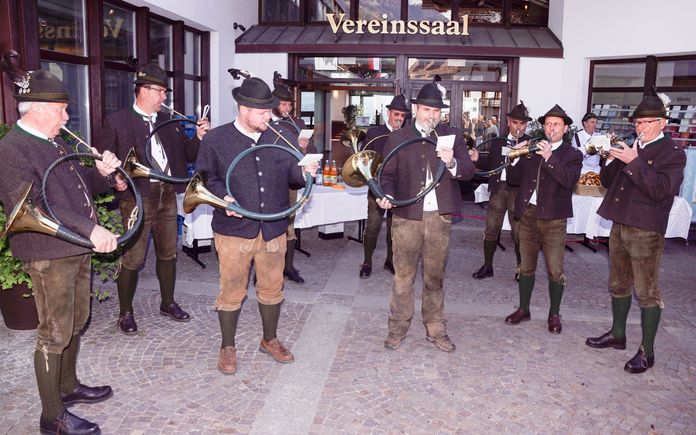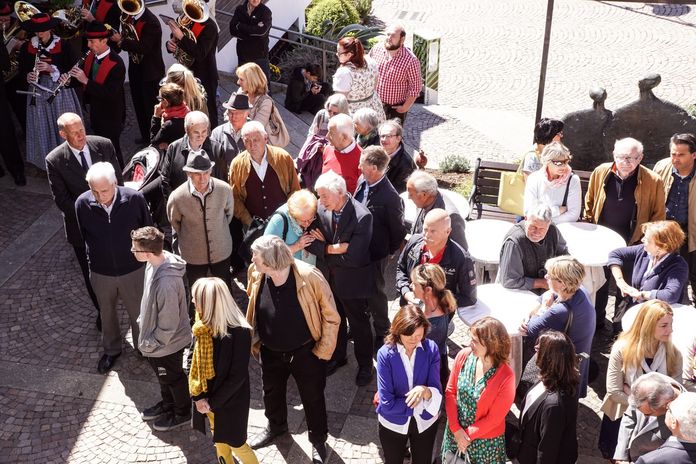 Weitere Gäste: Gemeindereferenten und Gemeinderäte, Klaus Mair, Präsident des Tourismusvereins, Anton Kosta, Vorsitzenden GFV, Obmänner und Geschäftsführer vom Bezirk Burggrafenamt, Jagdhornbläser, Abordnung der Musikkapelle Tirol und Vertreter der am Umbau beteiligten Firmen.