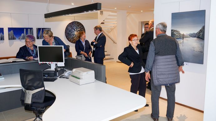 Die Eröffnungsfeier war für den Samstag, 22. April, 11.00 Uhr angesetzt. Bei schönstem Wetter begrüßte Erich Ratschiller, Bürgermeister von Dorf Tirol, Paul Gasser, Generaldirektor des Raiffeisenverbandes und Herbert Von Leon, Obmann des Raiffeisenverbandes Südtirol, die versammelten Mitglieder, Kunden und Geladene. Von Leon lobte die erfolgreiche Geschäftsführung der Raiffeisenkasse Tirol: "Eine neu eröffnete Bank oder - neu gestaltete Bankräume, sind immer auch ein Spiegelbild der einzigartigen und doch beachtenswerten Entwicklung der Raiffeisenkassen insgesamt in unserem Land", so der Obmann und bot eine kurzen Rückblick auf die Geschichte der Raiffeisenkassen in Südtirol. Im Anschluss daran nahm Pater Edmund Ungerer die feierliche Segnung der neuen Räumlichkeiten vor.