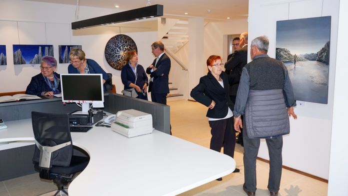 Die Raiffeisenkasse Tirol hat ihren rundum erneuerten Sitz an der Hauptstraße in Dorf Tirol der Öffentlichkeit vorgestellt. Zeitgleich wurde auch die Ausstellung "G'fund'n" der Künstlerin Judith Klotzner aus Schenna eröffnet.