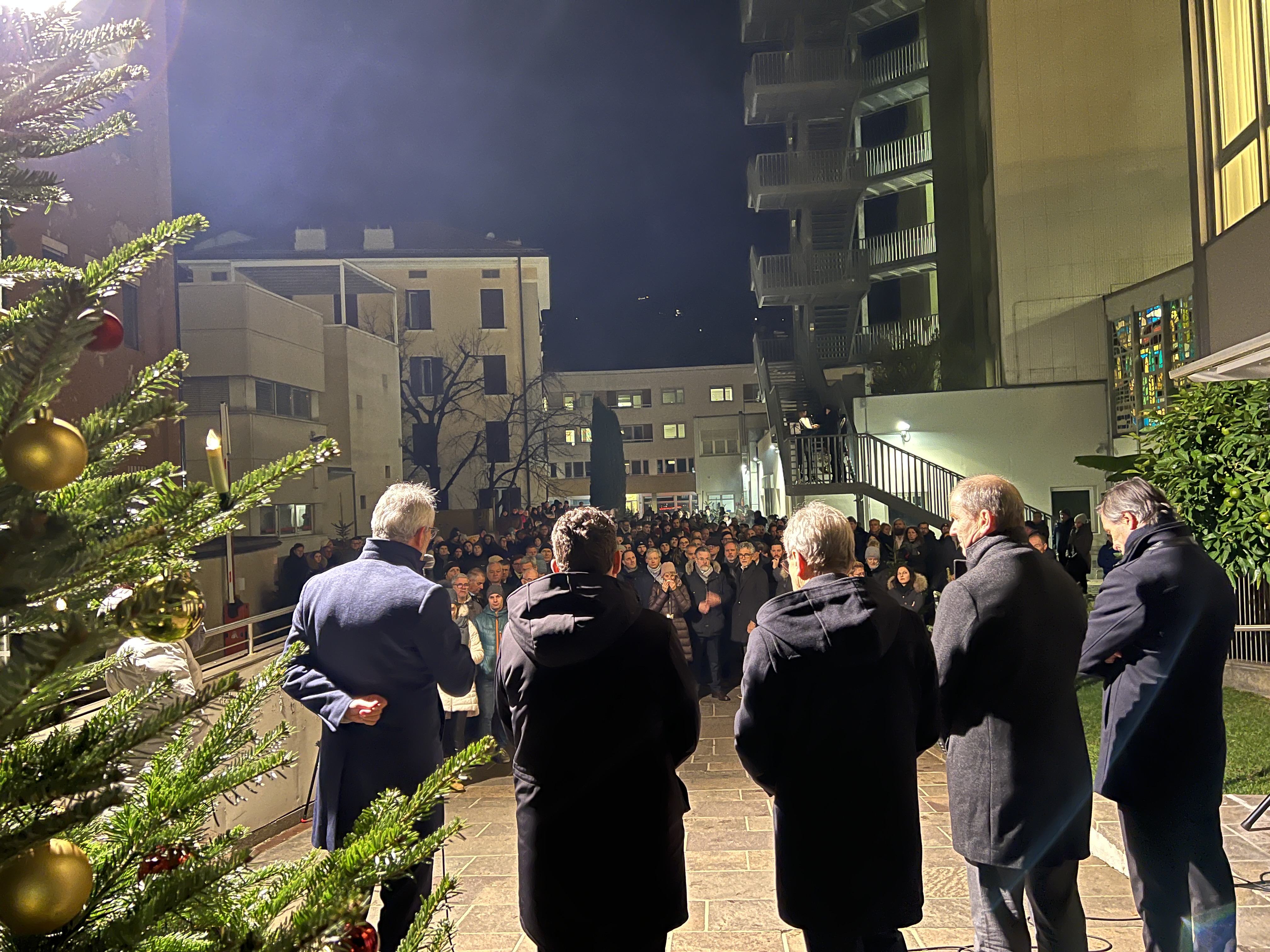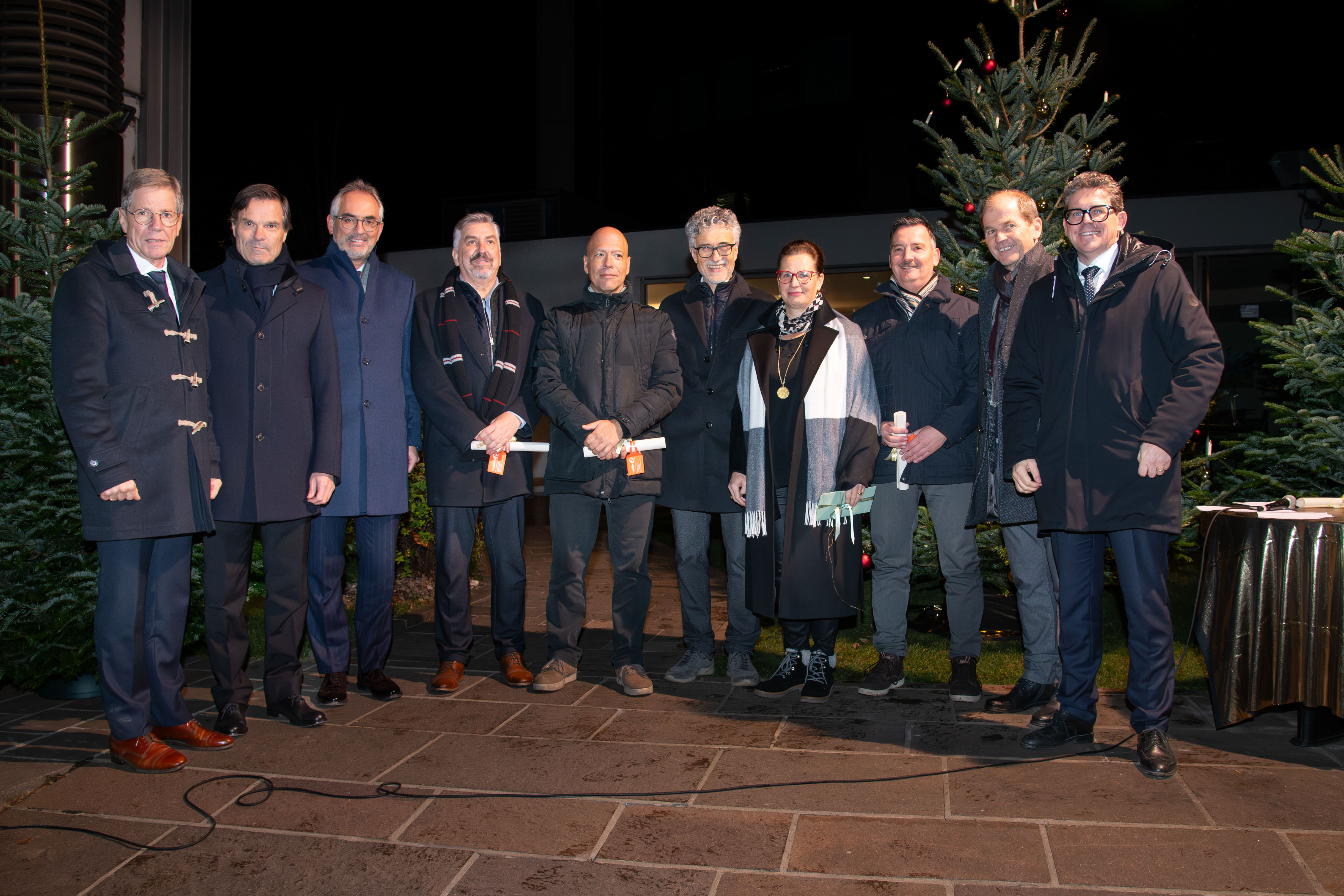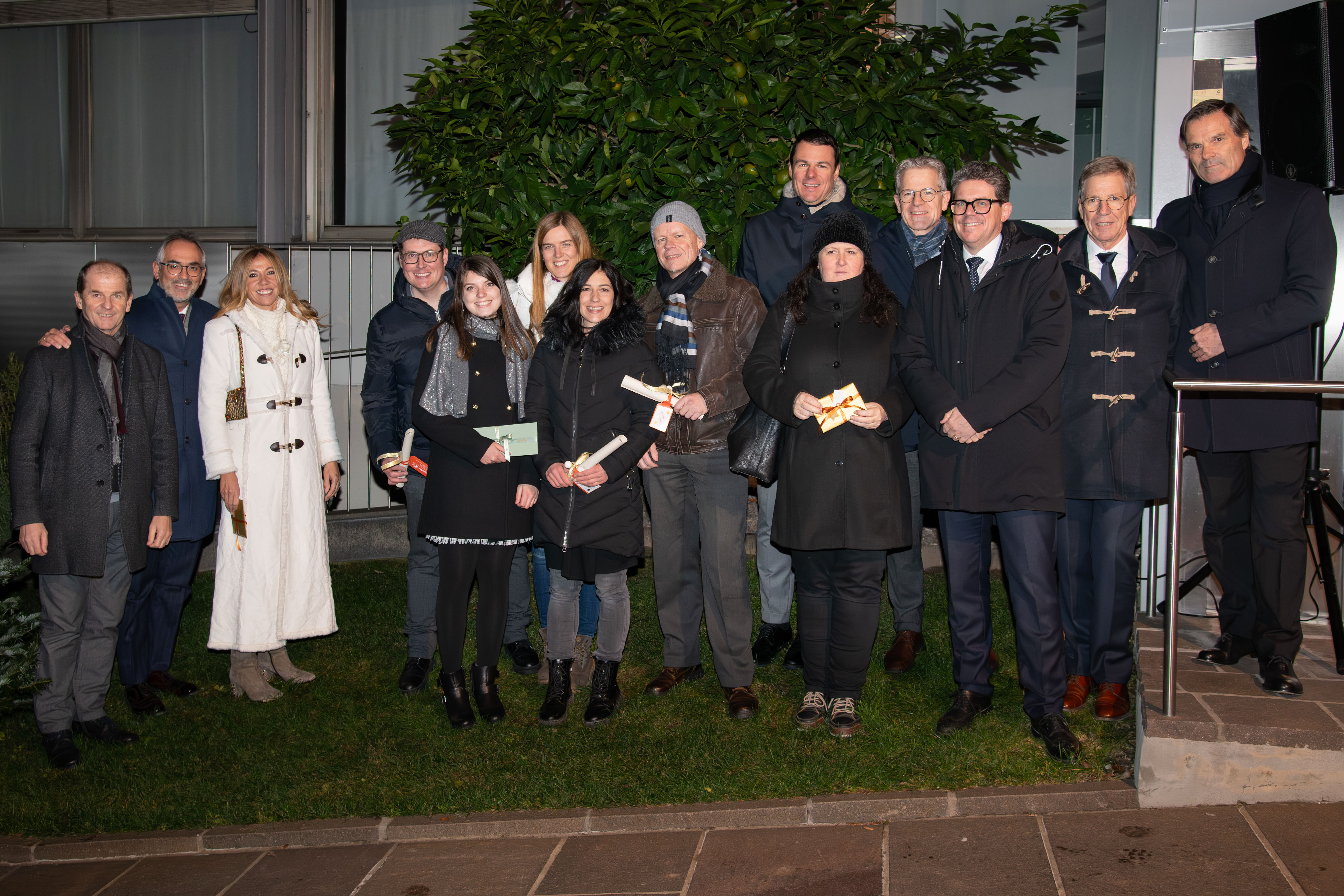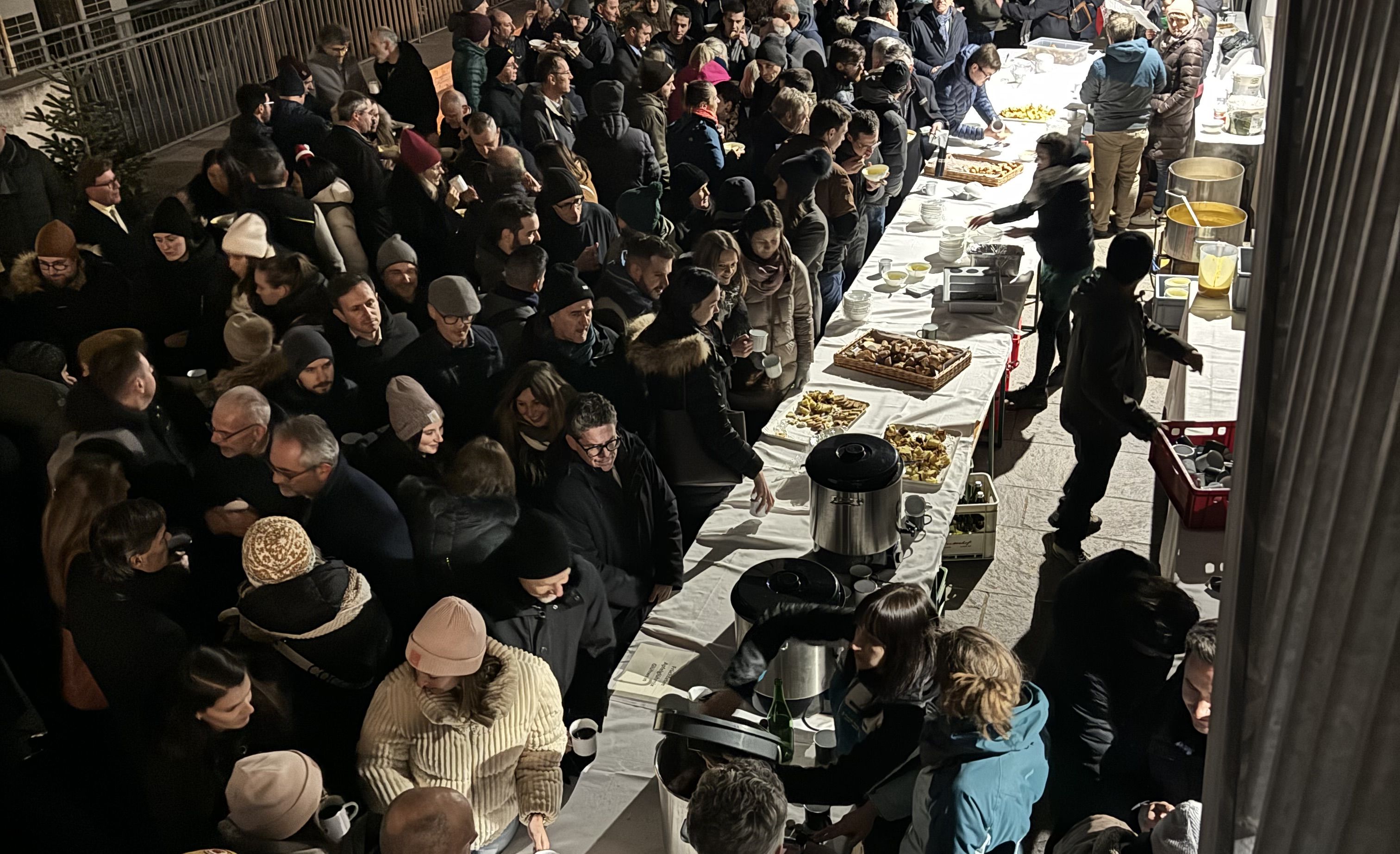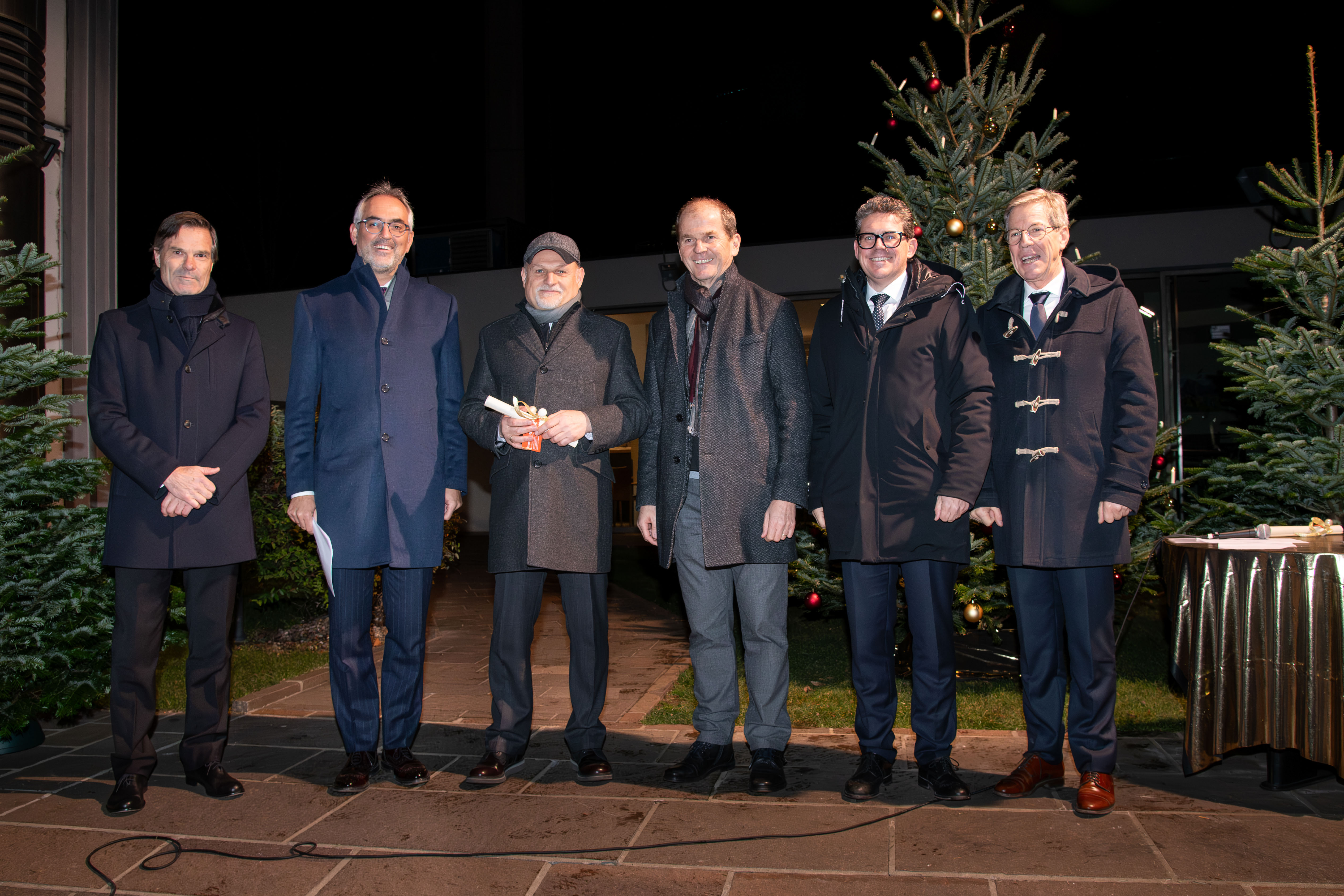 Im weihnachtlich gestalteten Hof des Raiffeisenhauses in Bozen fand am 12. Dezember die gemeinsame Weihnachtsfeier des Raiffeisenverbandes Südtirol, der RIS KonsGmbH und dem Raiffeisen Versicherungsdienstes (RVD) statt. Über 370 Mitarbeiterinnen und Mitarbeiter hatten sich dazu im - mit Christbäumen, Feuerschalen und Fackeln zum Winter-Wonderland umfunktionierten - Hof versammelt.