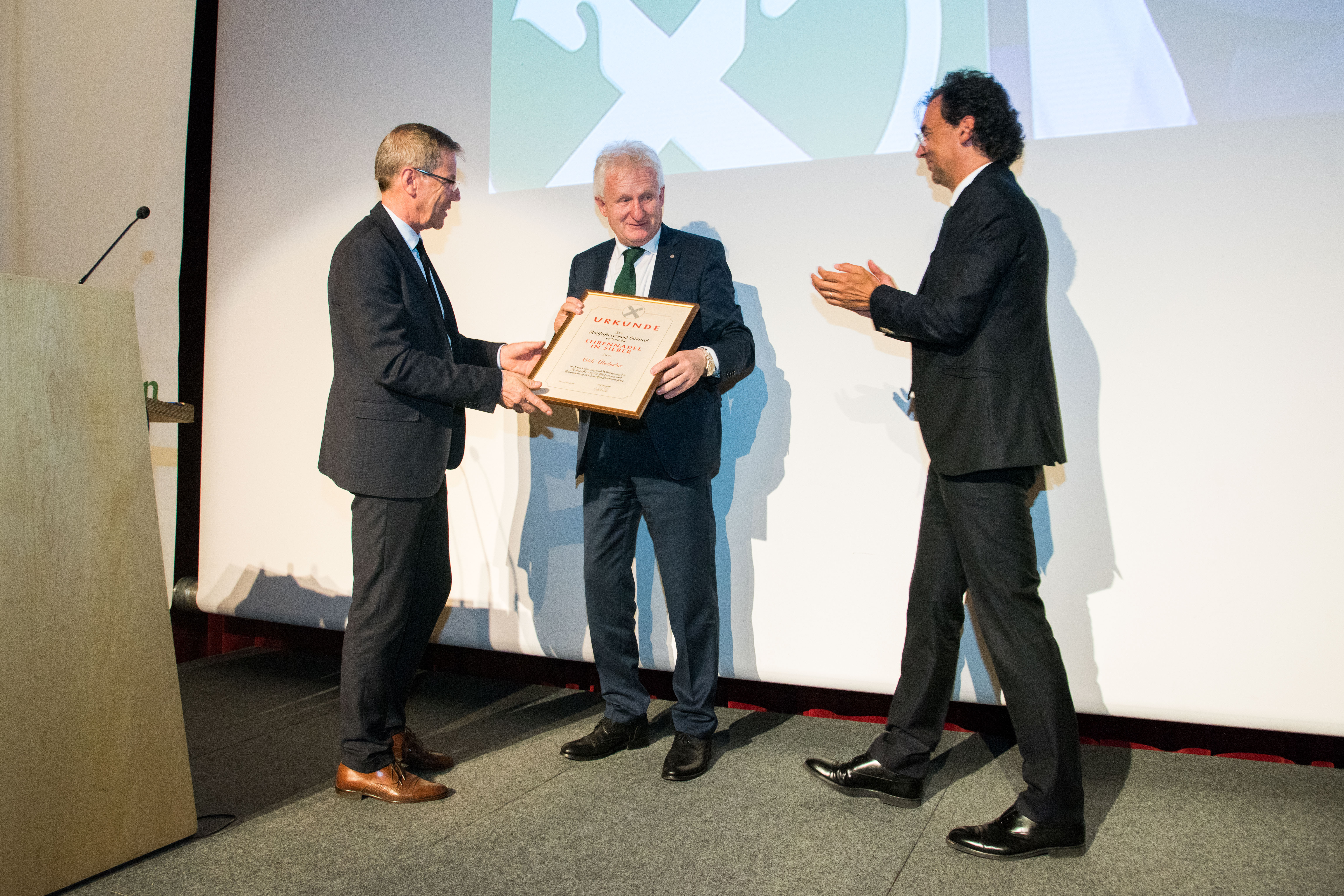 Insgesamt war Erich Überbacher genau 30 Jahre lang für die Raiffeisenkasse Eisacktal tätig. "In diesen drei Jahrzehnten hat er sein Mandat im Verwaltungsrat immer mit großer Sorgfalt und Verantwortung ausgeübt", sagte Verbandsobmann Herbert Von Leon in seiner Laudatio.