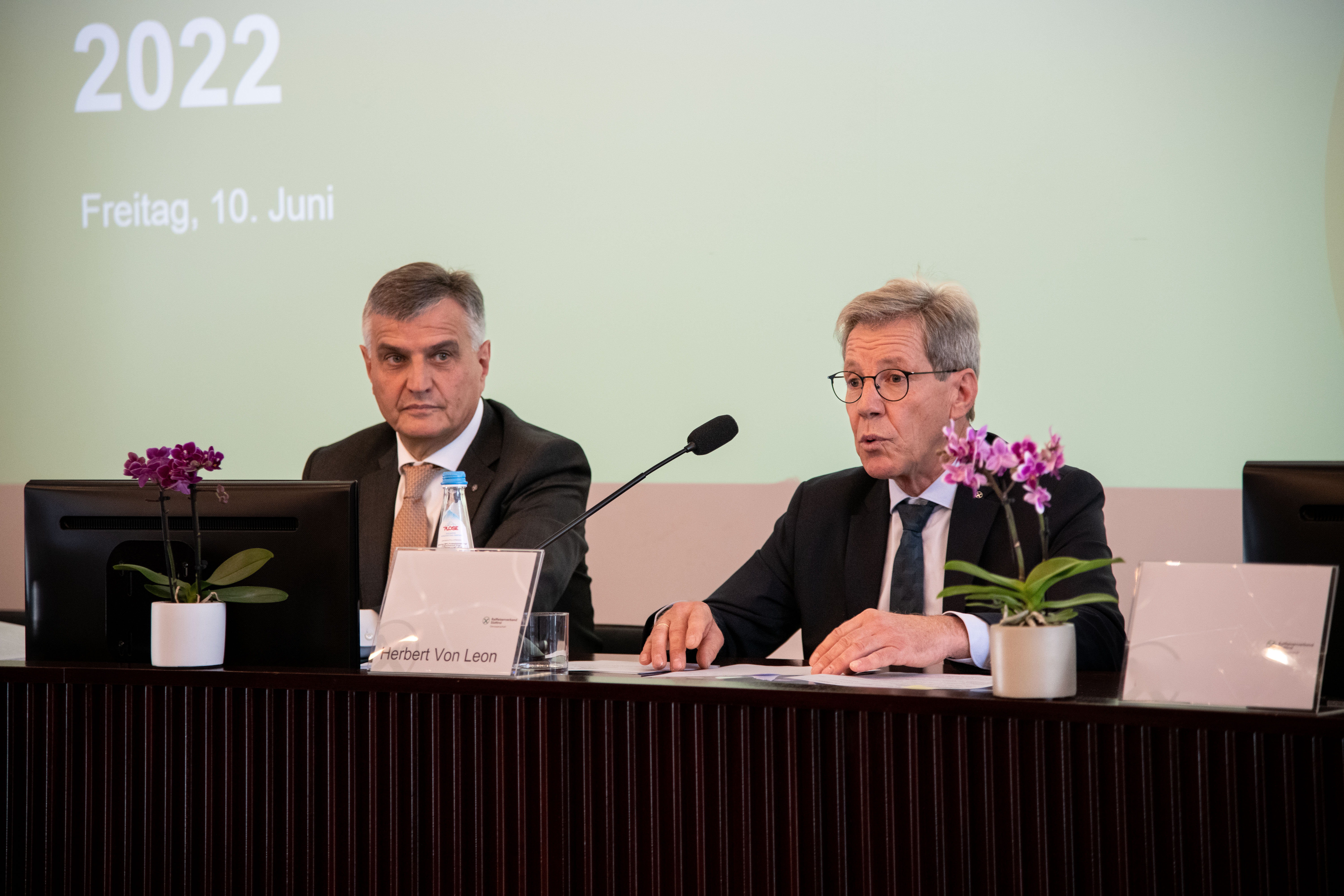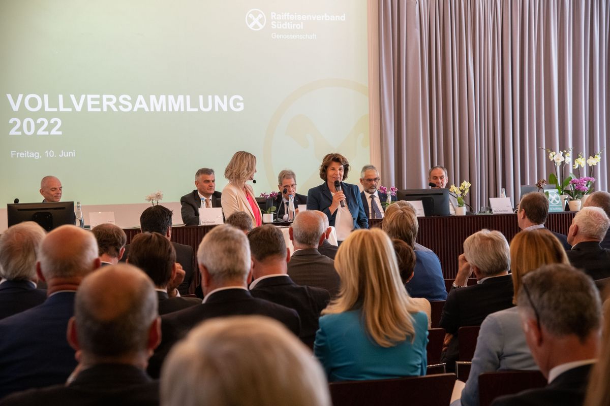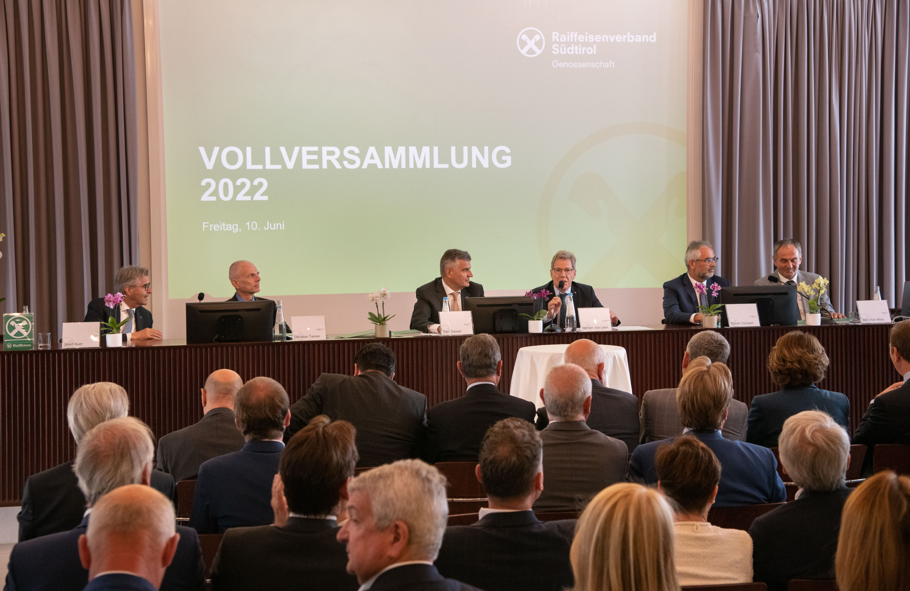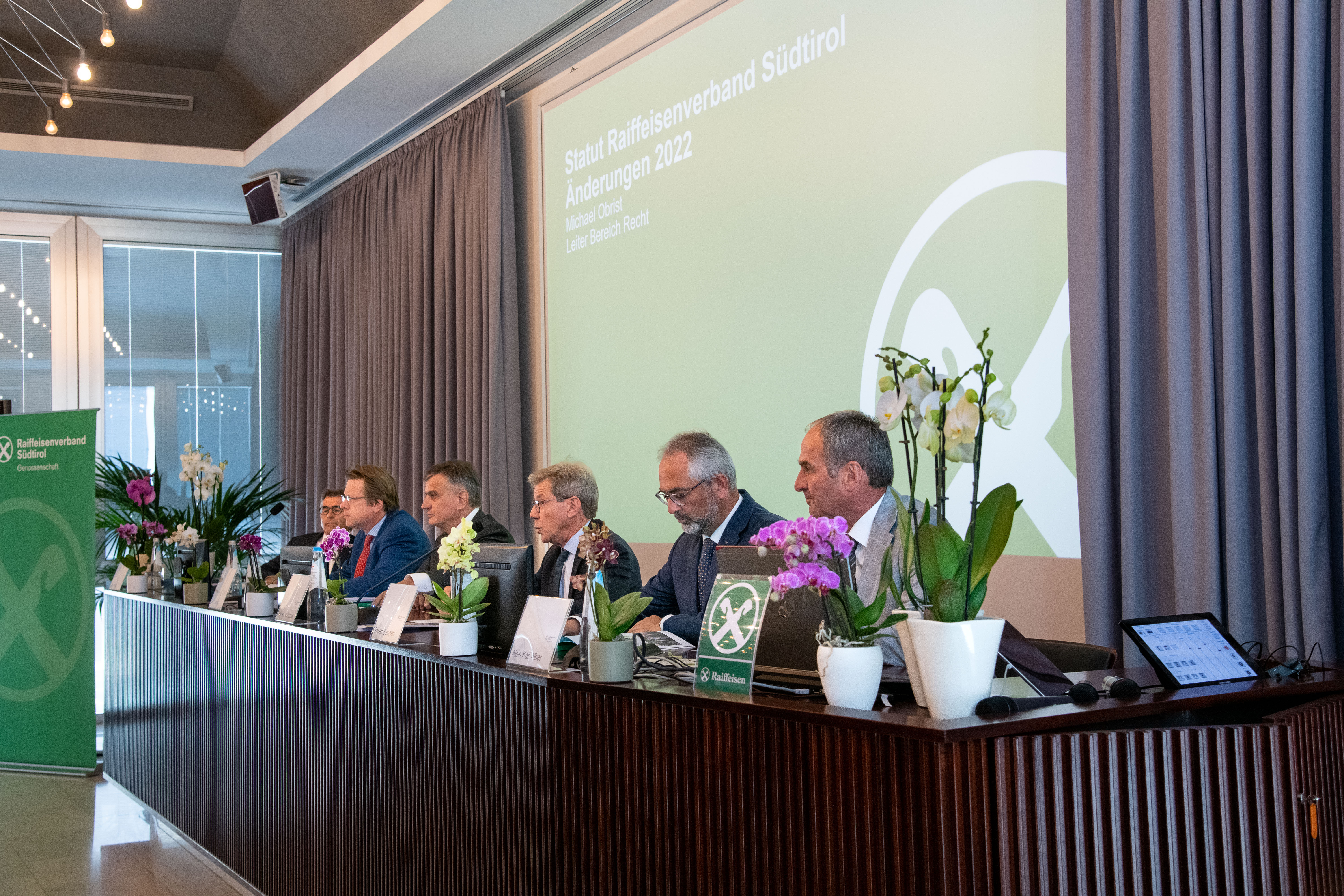 „Für den Raiffeisenverband war 2021 ein intensives und erfolgreiches Jahr“, sagte Verbandsobmann Herbert Von Leon im Pavillon des Raiffeisenhauses. Dabei wurde der Raiffeisenverband seiner Rolle als Interessenvertreter der Mitgliedsgenossenschaften gut gerecht. Als Errungenschaft nannte Von Leon die Novellierung des Regionalgesetzes Nr. 1/2000, um die strengen staatlichen Vorgaben für die Leitungsorgane von Banken an die lokalen Gegebenheiten anzupassen. „Dadurch können in den Raiffeisenkassen auch weiterhin Menschen aus der Breite der Bevölkerung als Verwaltungsräte tätig sein und die Basis der Mitglieder bleibt angemessen vertreten“, sagte Von Leon. Ebenso unterstützte der Raiffeisenverband das im Regionalrat beschlossene Gesetz für die Bürgergenossenschaften. „Eine zukunftsträchtige Form, um Gemeinwohl und aktive Bürgerbeteiligung vor Ort zu stärken“, so Verbandsobmann Von Leon. In Zusammenarbeit mit den Energieunternehmen Alperia und Regalgrid Europe bündelte der Raiffeisenverband im Berichtsjahr das Know-how für die Gründung genossenschaftlicher Energiegemeinschaften.