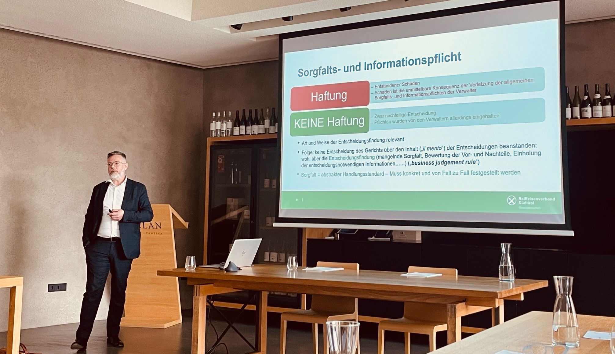 Die Rückmeldung der Teilnehmenden war positiv: "Es war eine rundum gelungene Inhouse-Veranstaltung, die nicht nur Wissen vermittelte, sondern auch begeisterte." Der Obmann der Kellerei Girlan, Oscar Lorandi, bestätigte: "Das Feedback der Teilnehmerinnen und Teilnehmer war ausgezeichnet. Die gestellten Fragen wurden durch praxisnahe Beispiele verständlich beantwortet, sodass auch die Mitglieder im Verwaltungsrat in ihrer ersten Amtszeit die Inhalte gut nachvollziehen konnten. Für mich waren es lehrreiche Stunden. Der Referent hat es verstanden, die komplexen Themen spannend und anschaulich darzulegen. Einiges war mir bereits bekannt und konnte vertieft werden. Anderes war auch für mich neu", berichtet der Obmann.